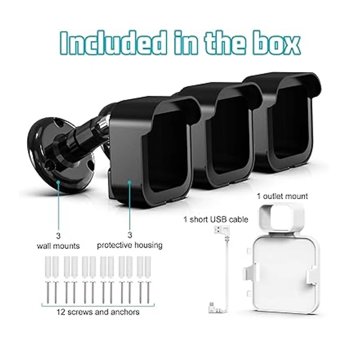 Sonomo Blink Soportes de pared para cámara al aire libre, 3 piezas, cubierta protectora resistente a la intemperie con módulo de sincronización de parpadeo, montaje de 2 salidas para parpadeo al aire libre, accesorios para sistema de cámara de seguridad exteriornegro