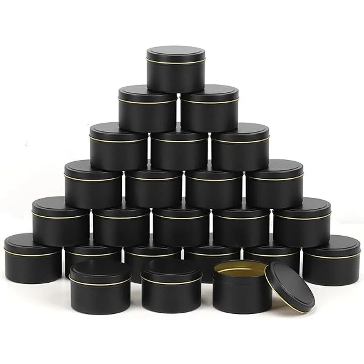 SONVIIBOX Paquete de 24 latas de velas de 8 onzas, latas de velas negras para hacer velas a granel, tarros de velas de 8 onzas, tarros de lata para hacer velas, tarros de metal paquete de 24, negro