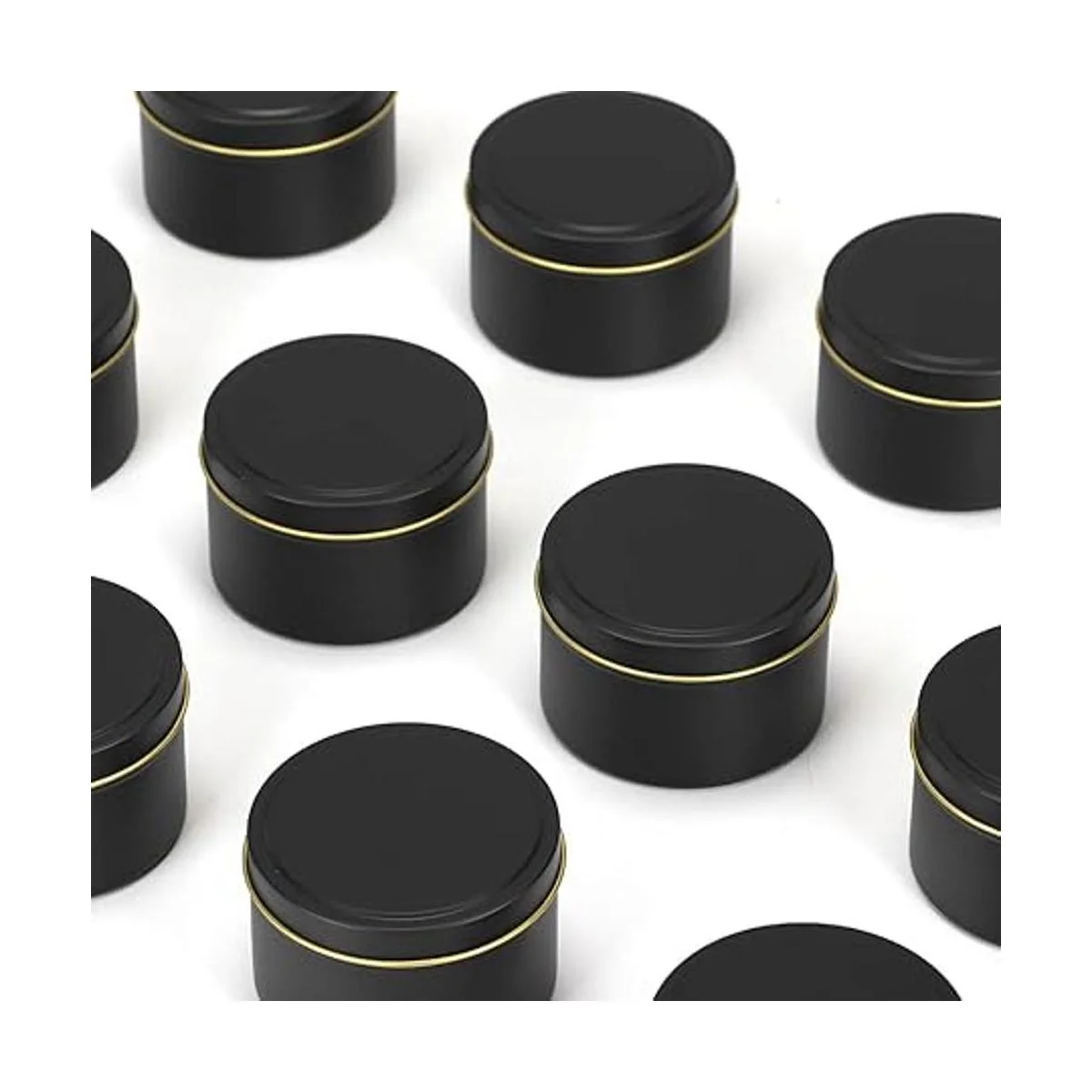 Calidad: estas latas de vela están hechas de hojalata de grado alimenticio, impresión negra en la superficie, impresión dorada en la superficie interior.