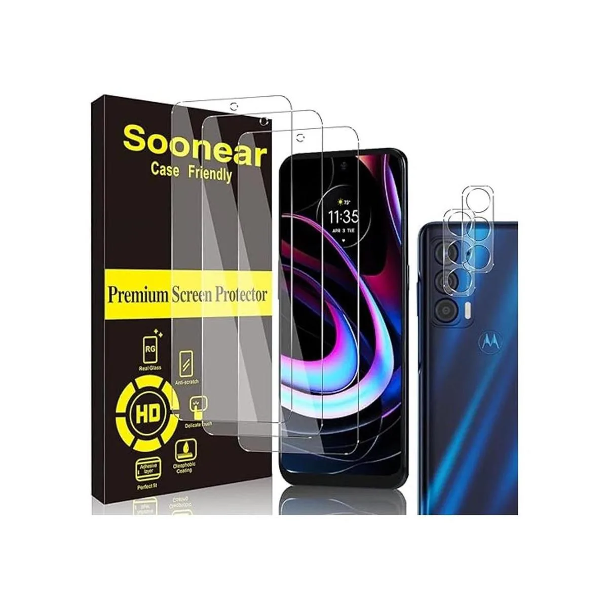 Soonear Protector de pantalla compatible con Motorola Edge 2021 de 6.8 pulgadas Motorola Edge 2021 protector de cámara de vidrio templado compatible con Motorola Edge 20, transparente