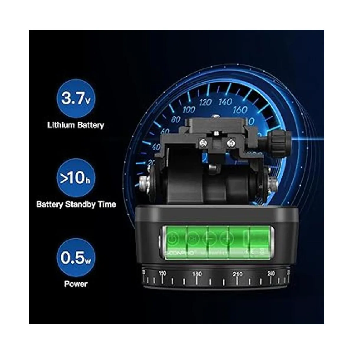 La inclinación panorámica tiene una batería de litio recargable integrada. Un botón de visualización de batería está diseñado en la inclinación panorámica, lo que es muy conveniente para que puedas comprobar la batería restante.