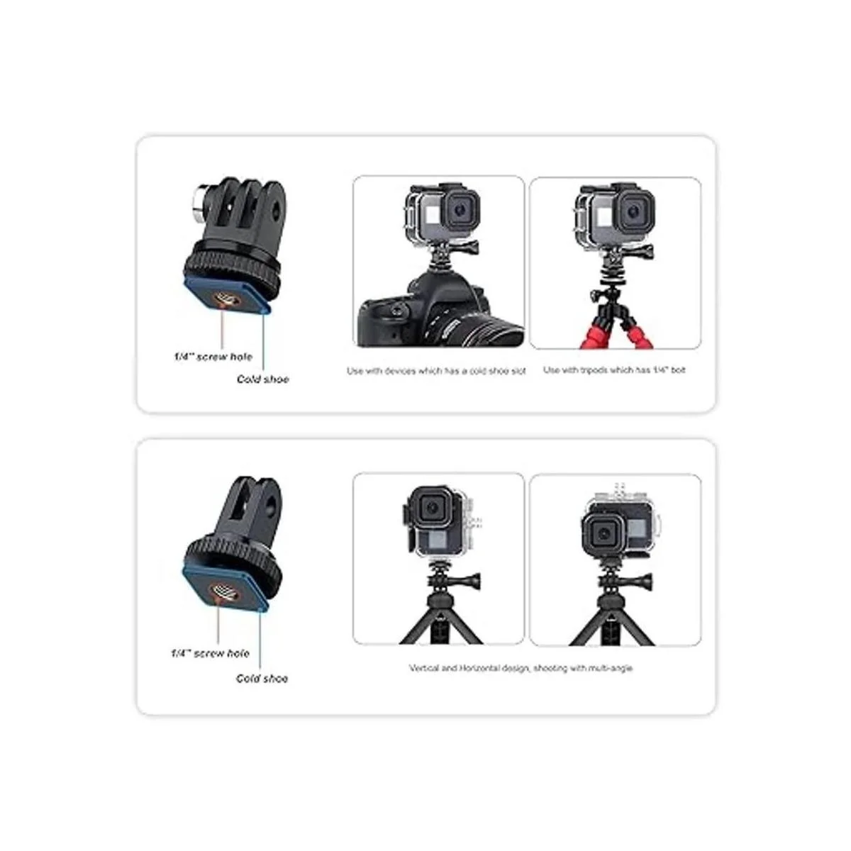 Varios accesorios: la funda impermeable SOONSUN viene con soporte de hebilla de liberación rápida, tornillo de pulgar, adaptador de montaje de zapata caliente de 2 dedos, adaptador de montaje de zapata de 3 dedos e inserciones antivaho. El kit de accesorios amplía enormemente la conectividad de la cámara Hero8 Black con otros accesorios.