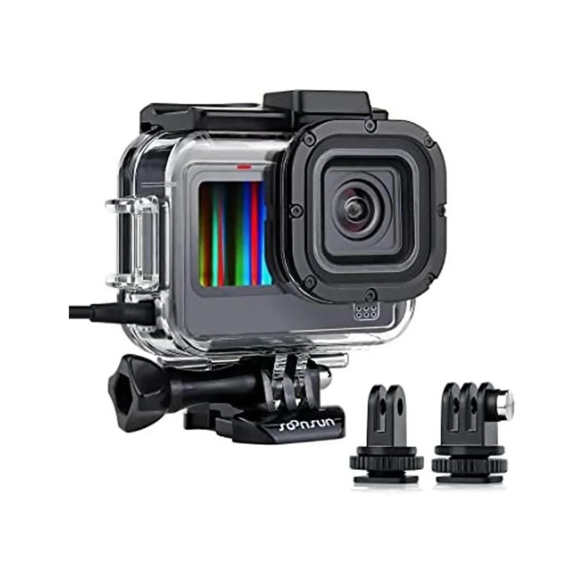 SOONSUN Carcasa protectora abierta lateral de esqueleto para GoPro Hero 11 negroHero 10 negroHero 9 negro, carga sin quitar la carcasa de la funda, soporte integrado de doble ranura para zapato frío para luz LED