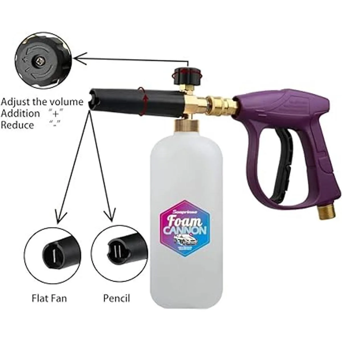 Sooprinse Boquilla de espuma, cañón de espuma, lavado a presión, kit de lanza de cañón de espuma con pistola de rocío para lavado a presión, varita limpiadora de canalones de 30 grados con fijación de punta de boquilla