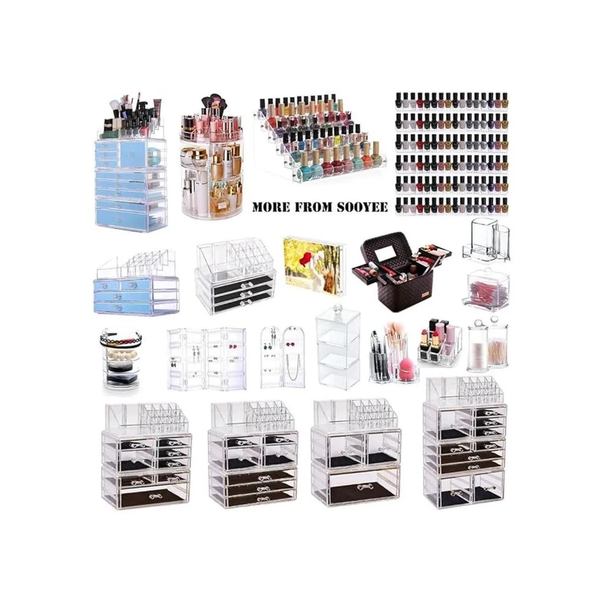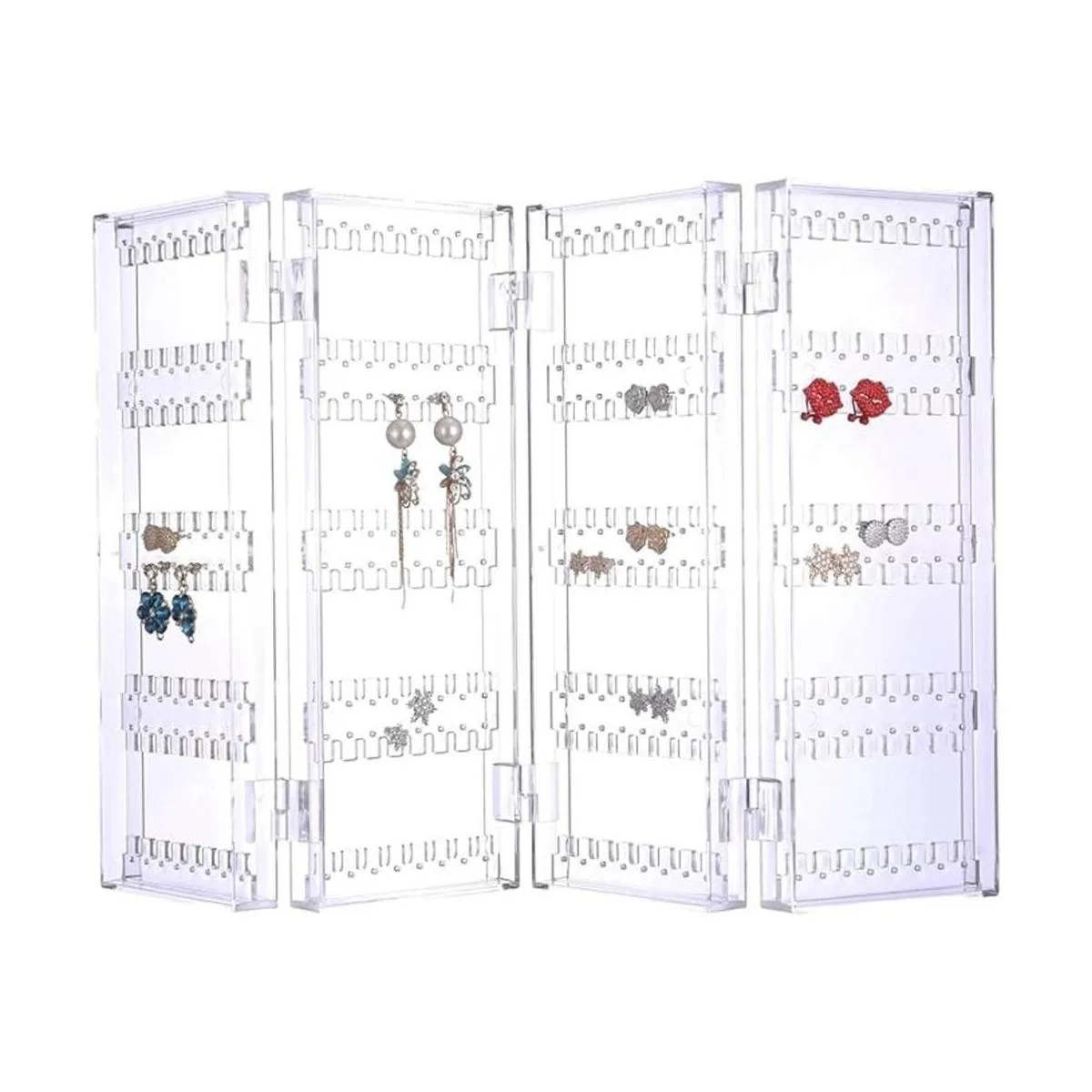 Sooyee Organizador de aretes de 256 agujeros, 5 niveles, organizador de collares plegable de 4 puertas, soporte de joyería de pendientes, soportes de exhibición de aretes acrílicos para la venta, transparente
