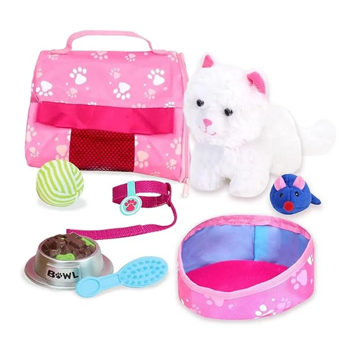 Sophias by Teamson Kids Juego de gatos y accesorios de peluche blanco para muñecas de 18 pulgadas