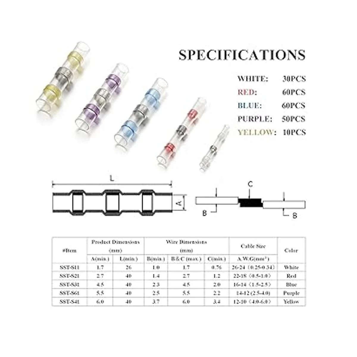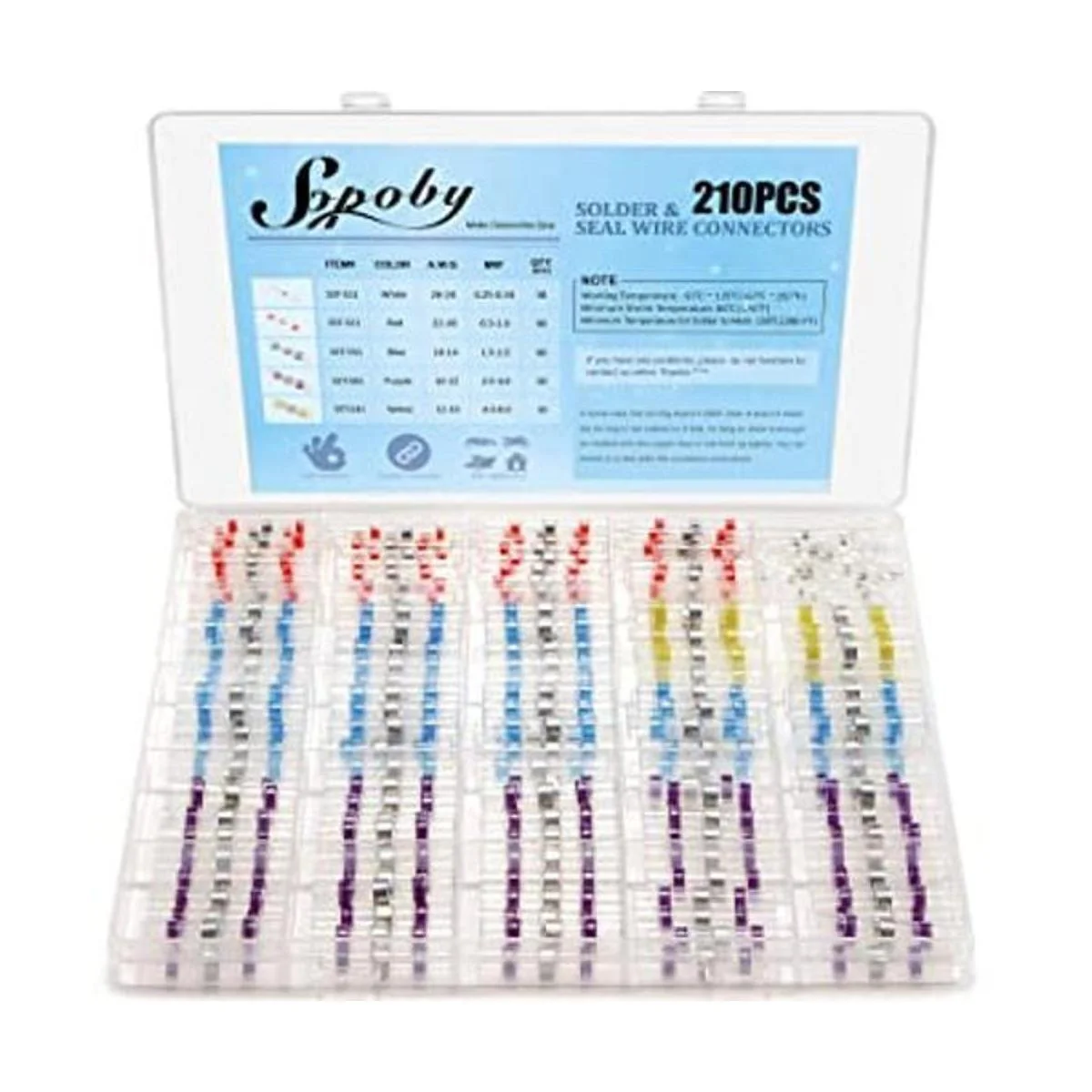 Sopoby 210 conectores de alambre de soldadura, conector termorretráctil, impermeable, aislado, eléctrico, empalme de extremo para automóvil, barco, camión, junta de alambre estéreo 5 colores5 tamaños