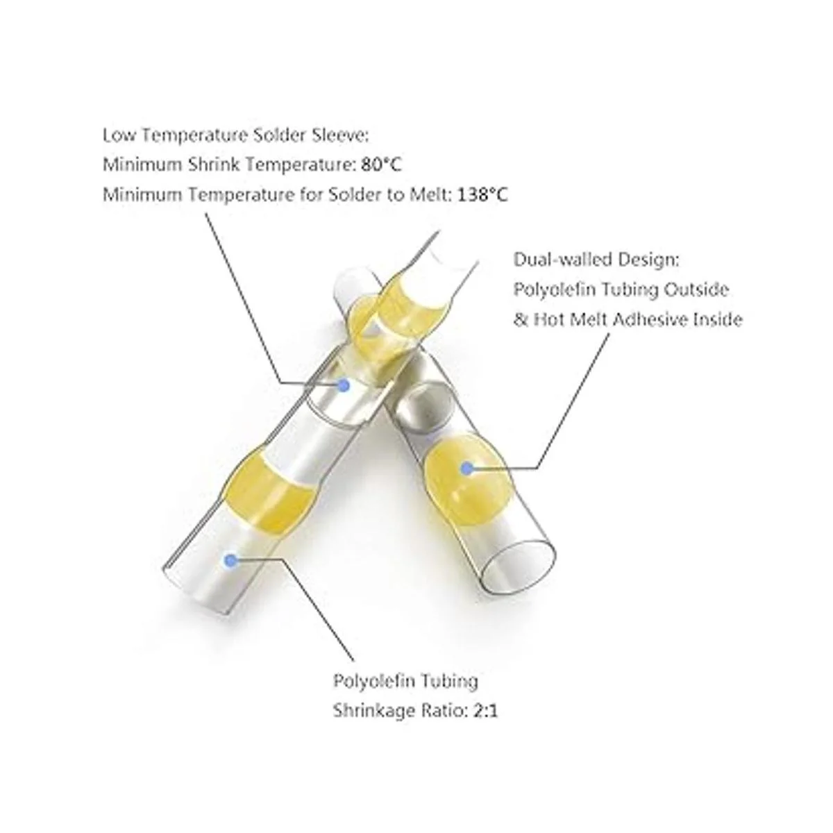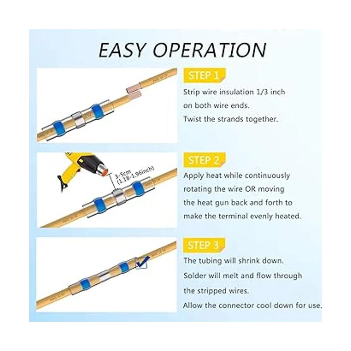 Aplicación rápida y fácil: todo lo que se necesita es una de calor para controlar la temperatura y conectar los cables incluso en un espacio reducido. No requiere crimpado, por lo que es más fácil y eficiente en comparación con los conectores de soldadura termorretráctiles estándar.