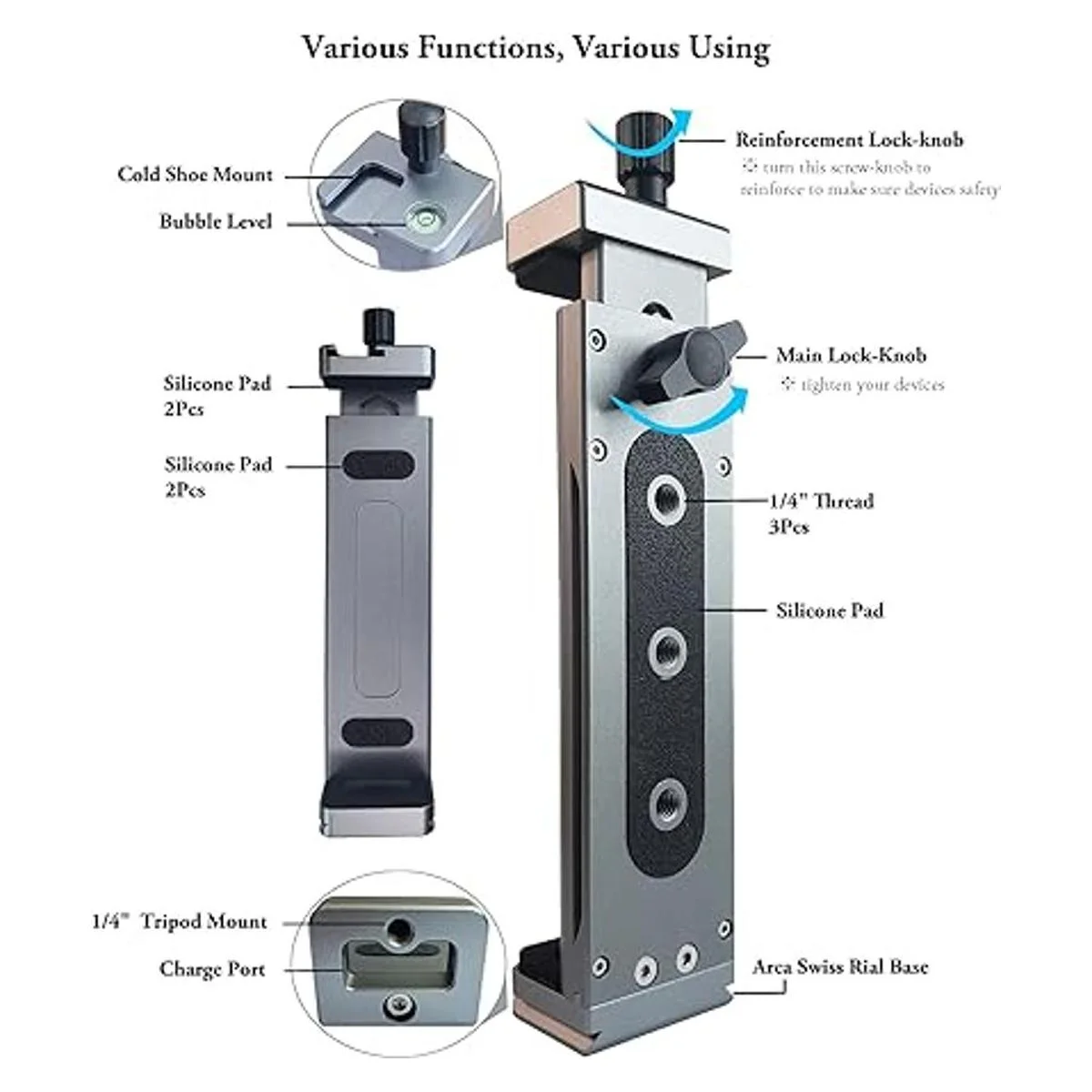 Soporte adaptador de aluminio para iPad Pro 12.9 11 10.5, iPad Air Mini, Surface Galaxy Tab, grabación de vídeo de 3.5 a 13.5 pulgadas.