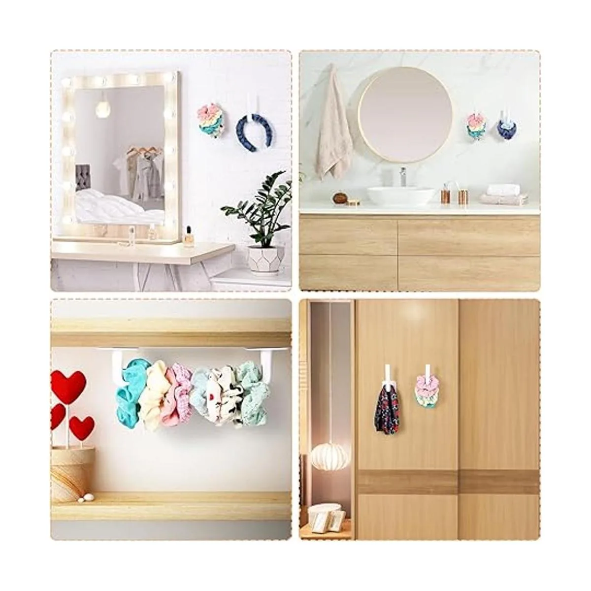Soporte adhesivo para coleteros, accesorios para el cabello, ganchos de pared, impermeables, estrujados, organizador para diadema, soporte para lazos para el cabello estilo simple, blanco