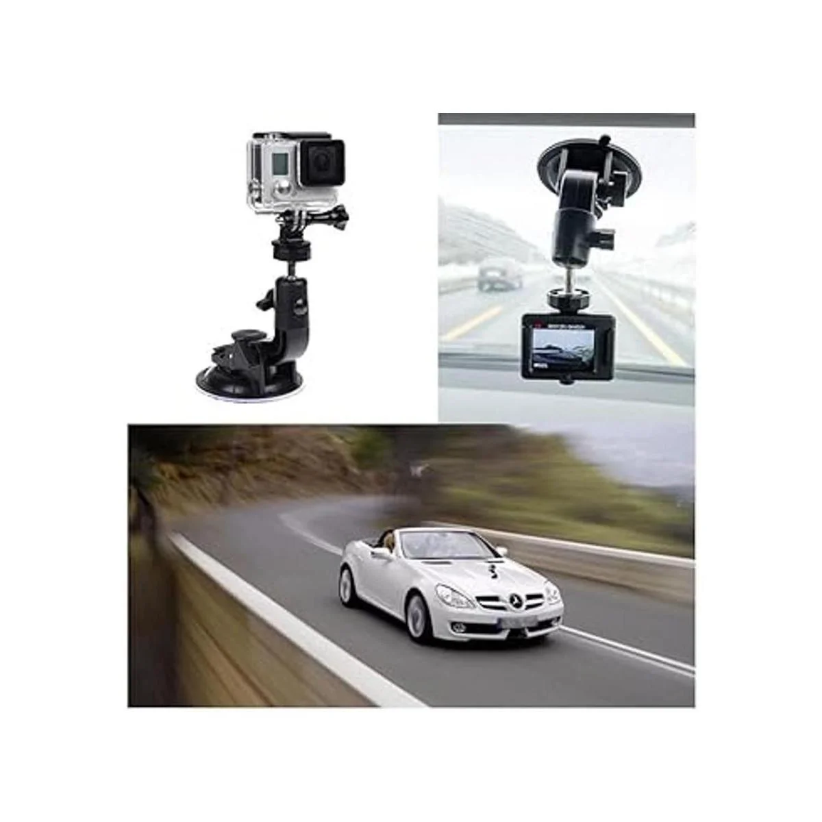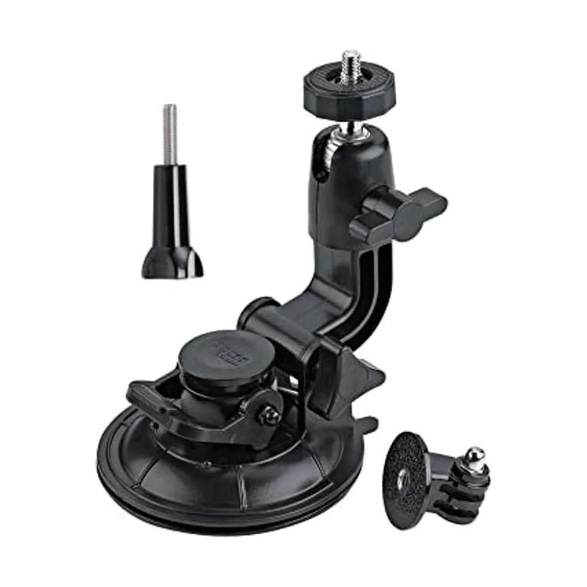 Soporte de cámara con ventosa resistente: altura extensible con inclinación de 360 grados, giro y rotación que ofrece posibilidades de disparo ilimitadas. Viene con un adaptador que puede mover la cámara en variedad de ángulos.