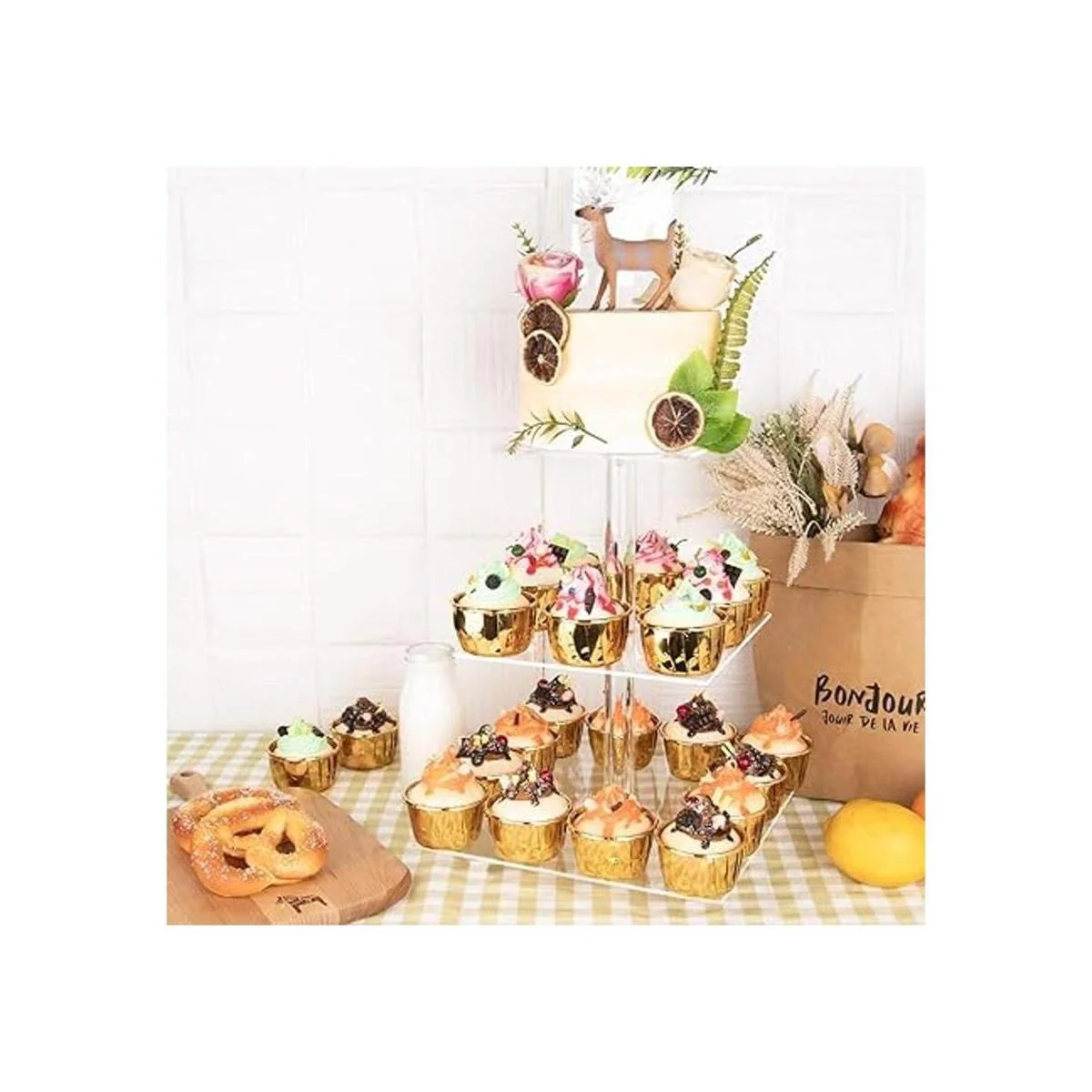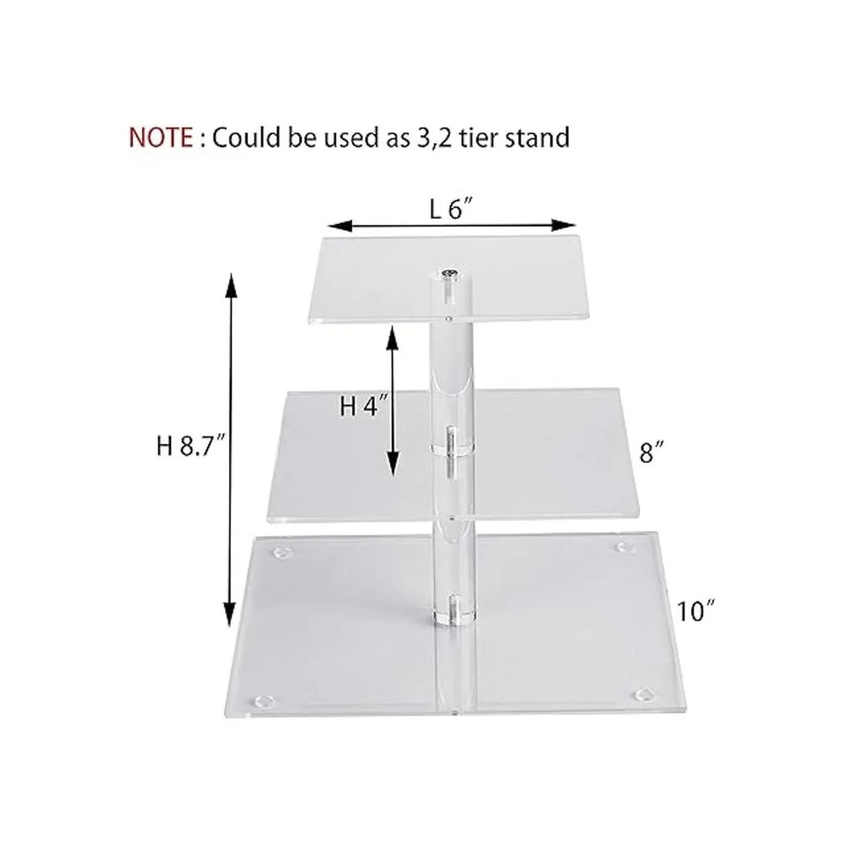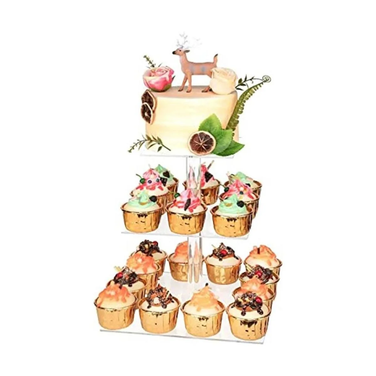 Estructura: se puede quitar como un soporte para cupcakes de 3,2 niveles, cada plato acrílico se puede montar libremente.