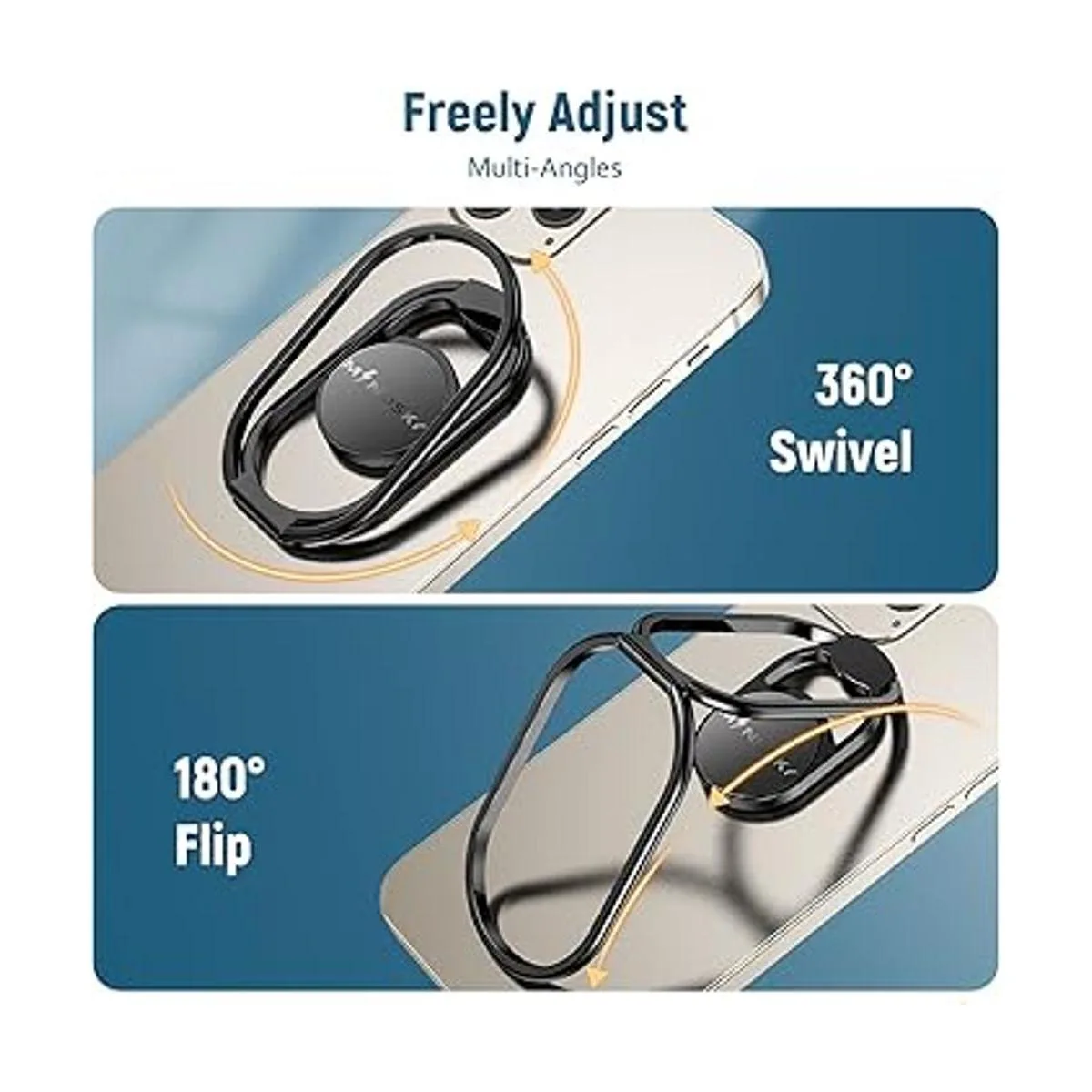 Diseño flexible multiángulo: 2 anillos ajustables hacen que sea más conveniente proporcionarte más ángulos de visión que cualquier otro soporte de anillo de teléfono celular o soporte de teléfono. El soporte para teléfono está probado para soportar 10000 veces de plegado sin aflojarse.