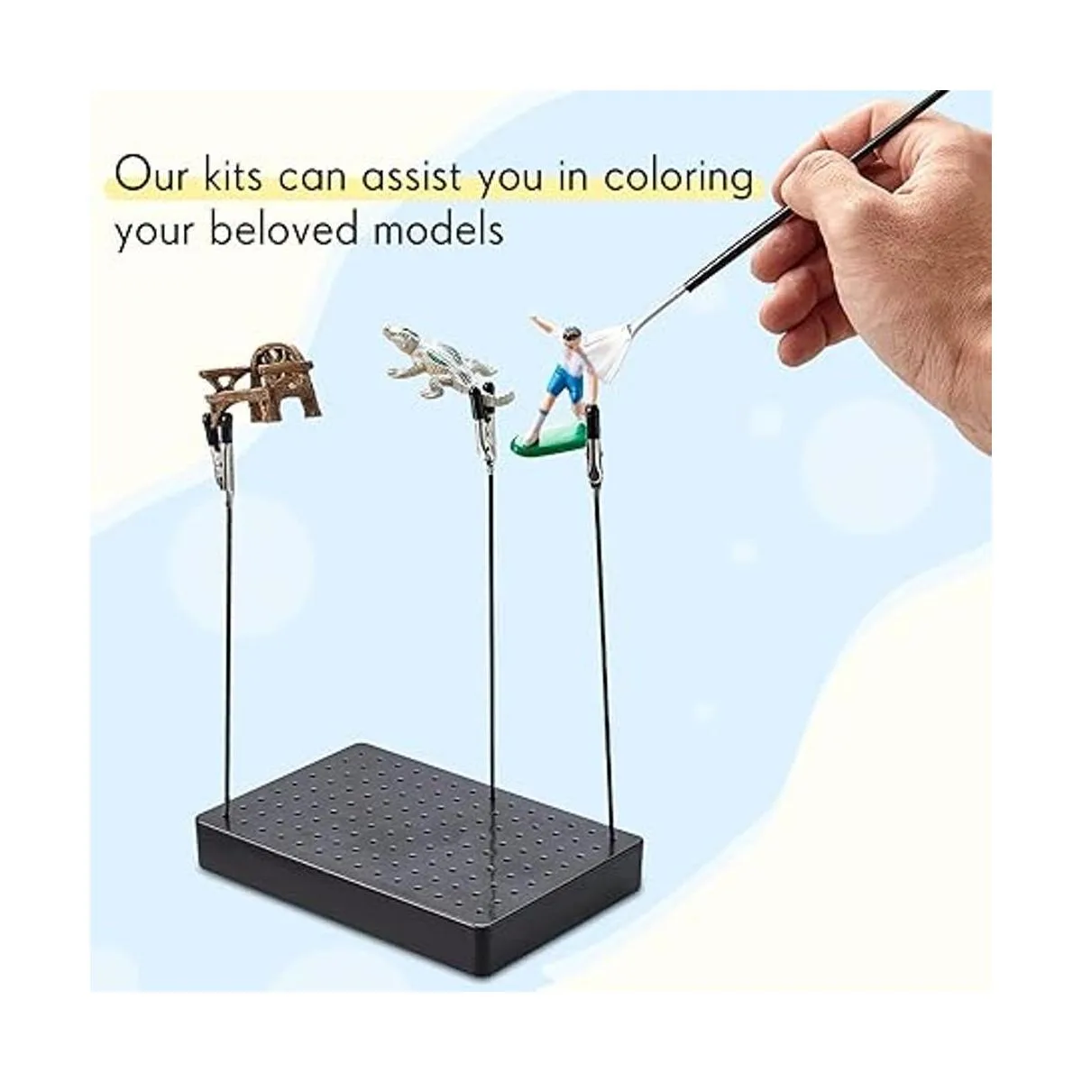 Fácil de usar: las piezas del modelo de aerógrafo son muy fáciles de usar y no te llevarán demasiado tiempo y esfuerzo, primero puedes utilizar los clips de cocodrilo en tu modelo, luego insertar los clips en la base, puedes utilizar el juego de cepillos para comenzar tu creación