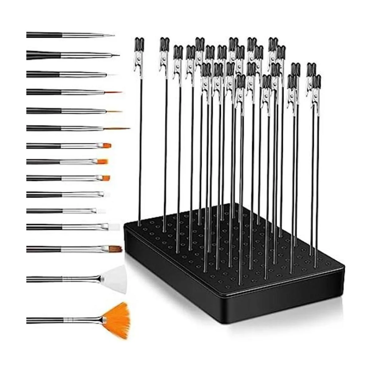 Contenido del paquete: recibirás 1 base de soporte de pintura, 24 clips de cocodrilo y 15 pinceles limpios en un paquete, cantidad suficiente y estilos que pueden satisfacer tus necesidades de uso diario y reemplazo, puedes compartir con tus amigos al mismo tiempo