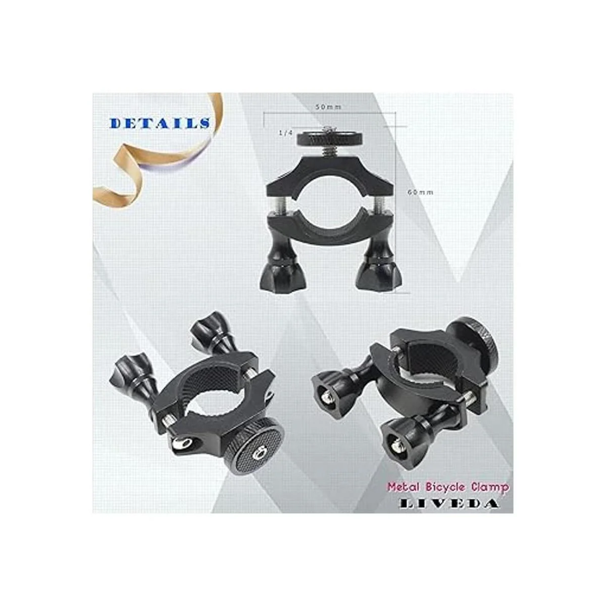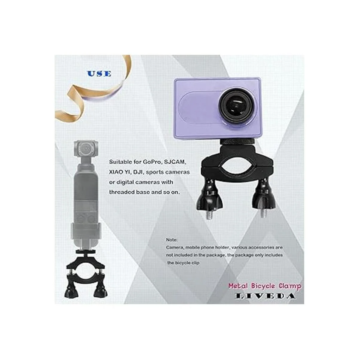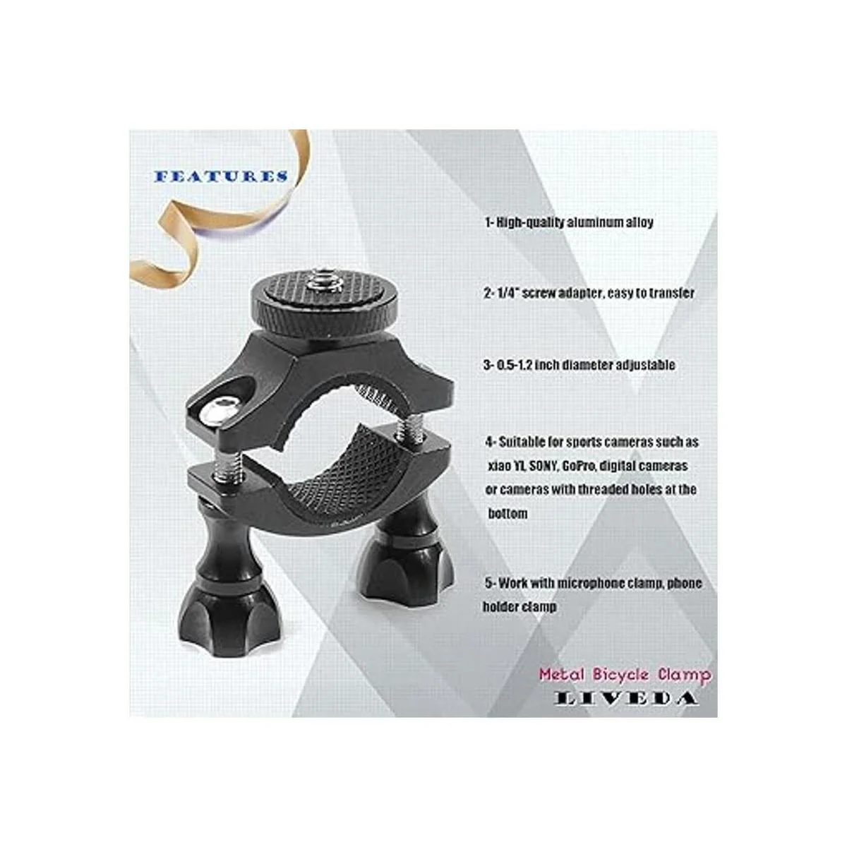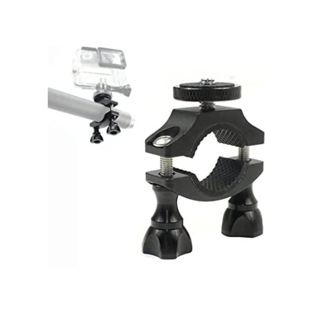 Fuerte compatibilidad Adecuado para GoPro, SJCAM, XIAO YI, DJI, cámaras deportivas o cámaras digitales con base roscada y así sucesivamente. La abrazadera de bicicleta también puede funcionar con linterna que tiene rosca de interfaz de 1/4.