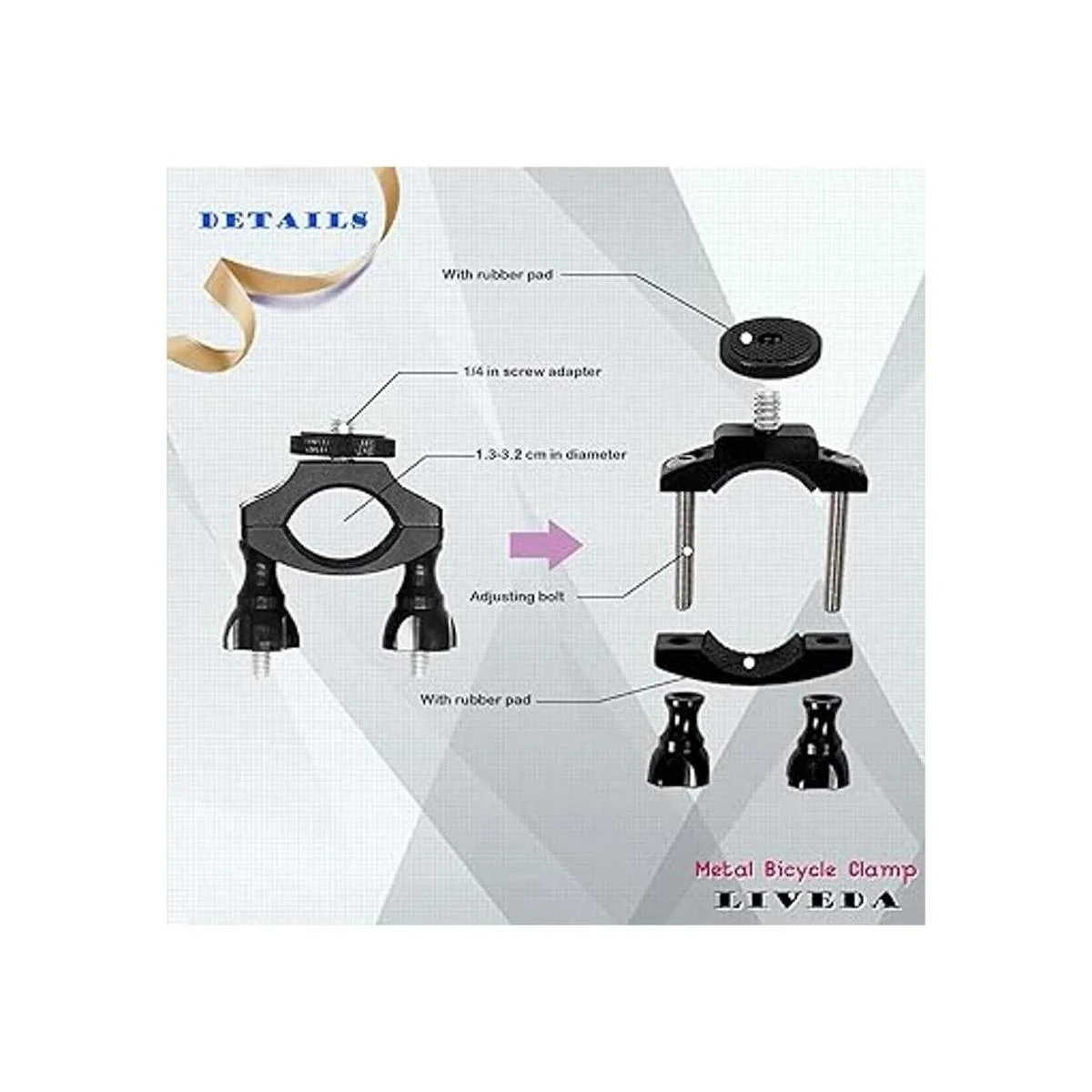 Adecuado para muchas ocasiones: con adaptador de tornillo de 1/4, puedes tener un palo selfie de extensión en la abrazadera para realizar disparos más emocionantes. Y la abrazadera de bicicleta también puede funcionar con abrazadera de micrófono, abrazadera de soporte de teléfono o conectar otros adaptadores de rosca de interfaz de 1/4, conveniente para tu disparo