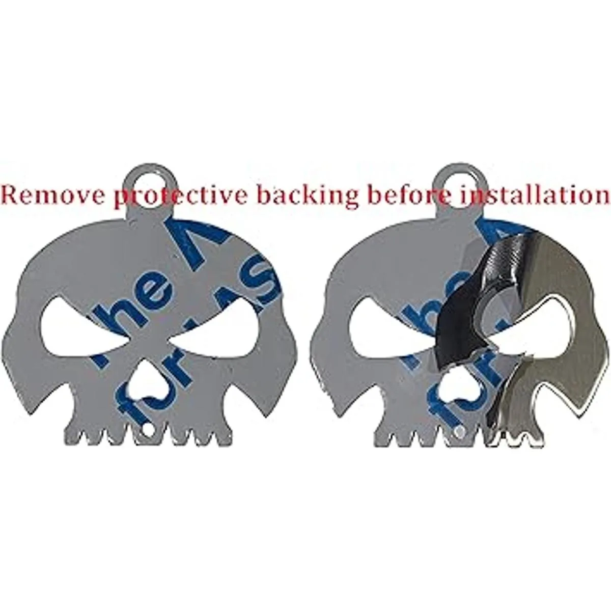 Calavera está hecho de acero inoxidable cepillado y viene con anilla 1 1/2 y 5/16 negro botón Cabeza Tornillos y Tuercas Nylock