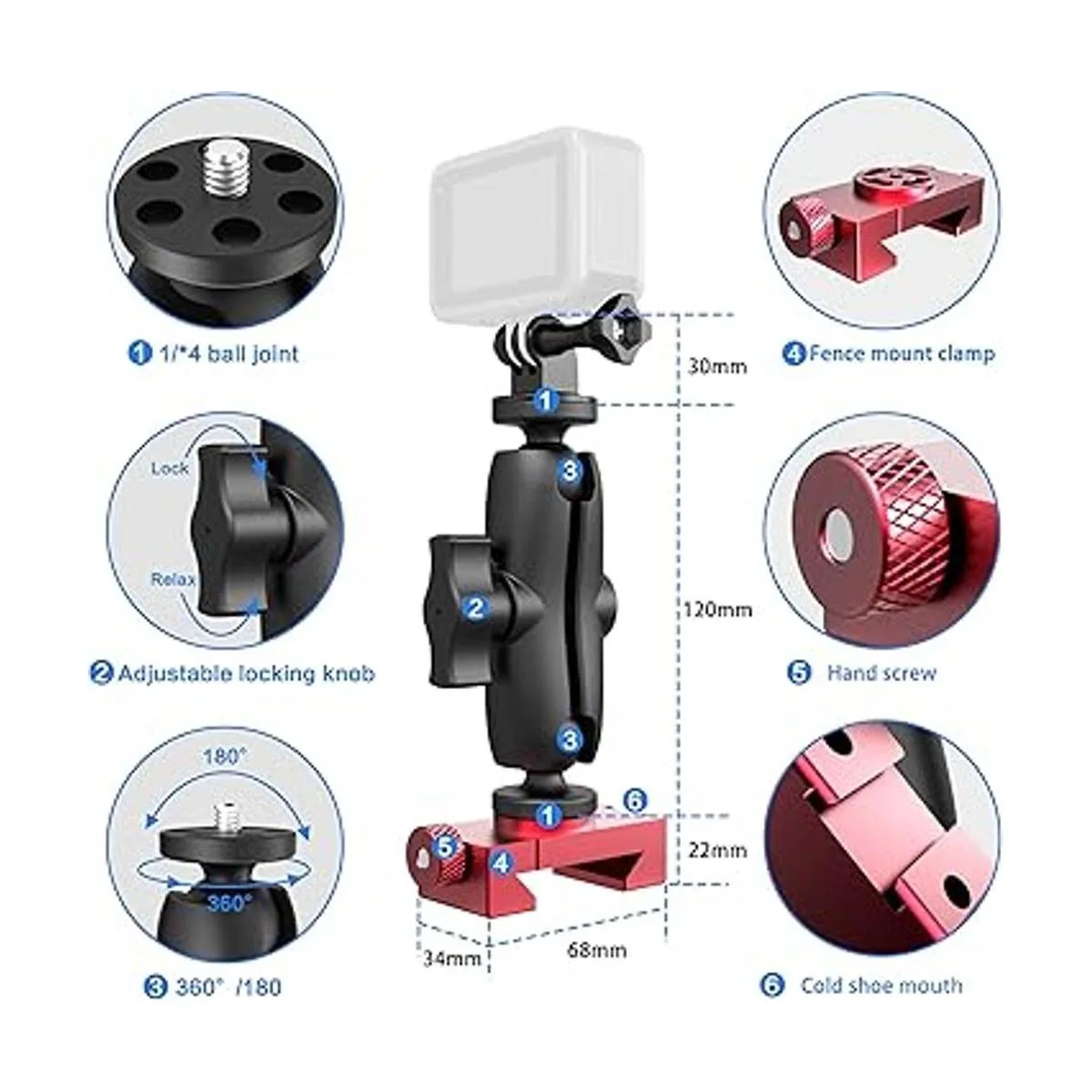 Amplia compatibilidad: compatibilidad de montaje de valla con iPhone, teléfonos, Mevo Start, GoPro Hero 11 10 9 8 7 6 5 4, cámara digital, Osmo Action, AKASO y más cámaras de acción.