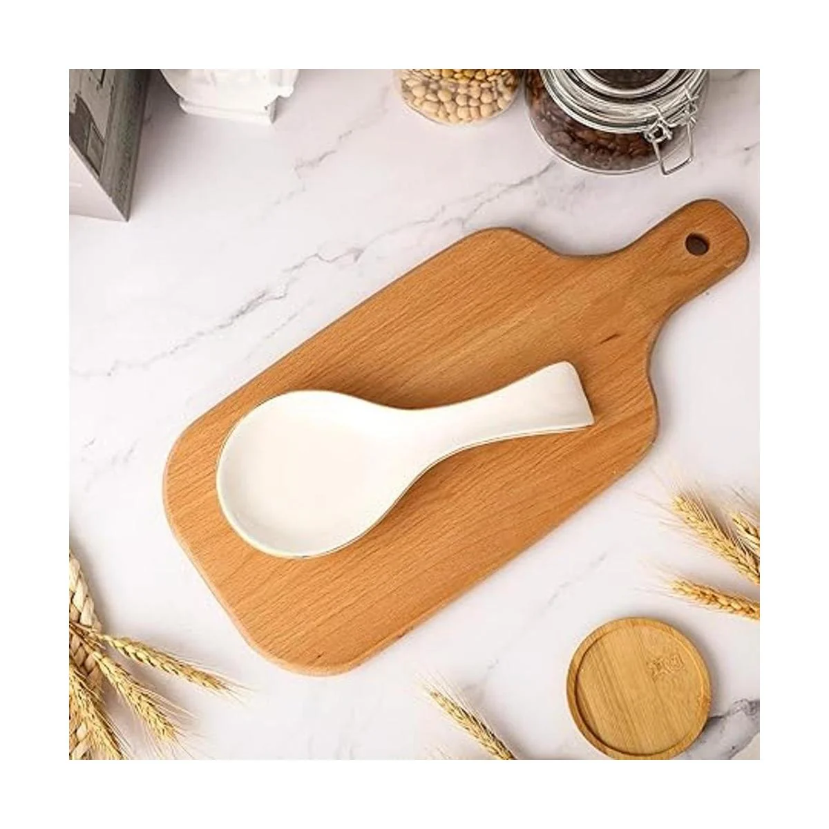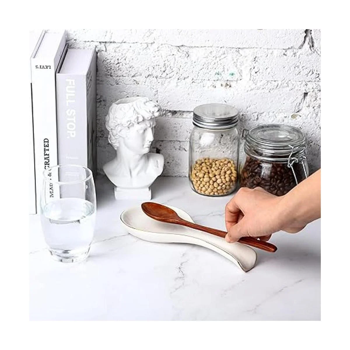 Tamaño adecuado: el soporte para cucharas mide aproximadamente 3.7 x 8.9 in largo x ancho. Práctico para apoyar cucharas grandes y pequeñas, cucharones, espátulas u otros utensilios de cocina, haciendo que tu vida esté llena de sentido ritual y aportando mucha comodidad