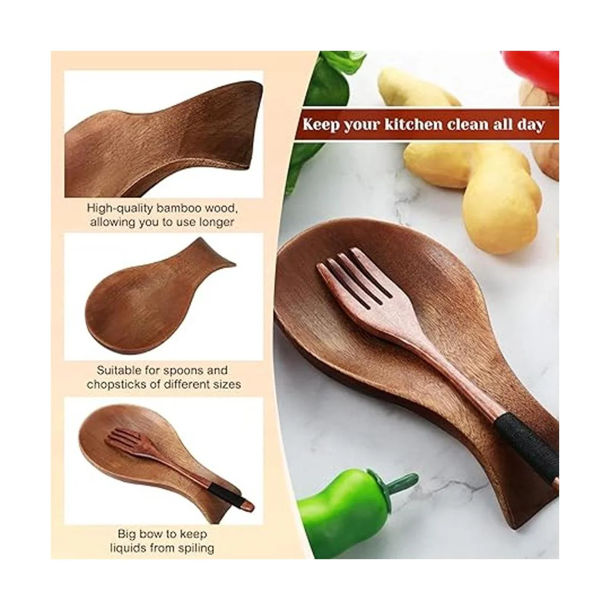 Material de calidad: este soporte para cucharas está hecho a mano en madera de bambú y mide 7 pulgadas de largo. El soporte para cucharas de cocina es un esencial de cocina imprescindible que puede contener cucharas de la mayoría de tamaños. El soporte para cucharas para cocina es útil incluso para colocar tus cucharas de servir en la mesa del comedor.