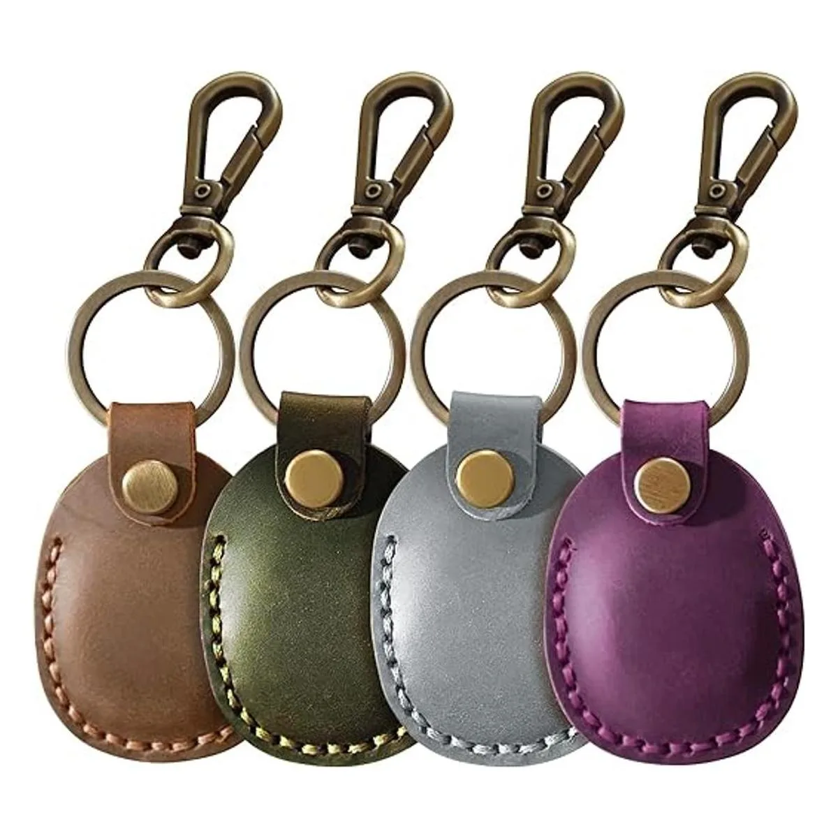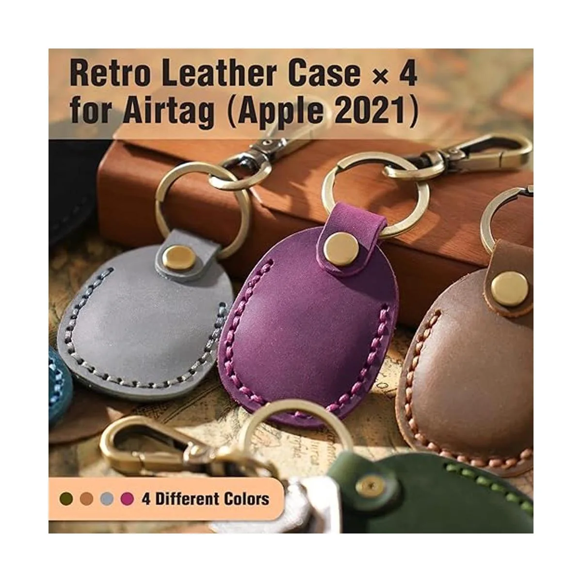 Soporte de cuero para AirTag 4 unidades con llavero, portátil, hecho a mano, de piel auténtica, con llavero, funda protectora para Airtag, accesorios coloridos, paquete de 4