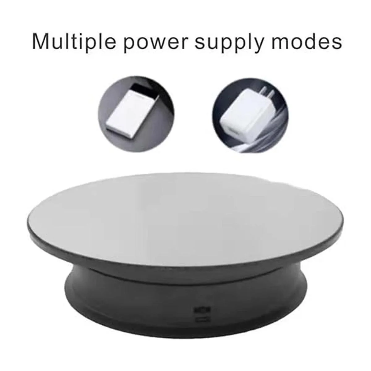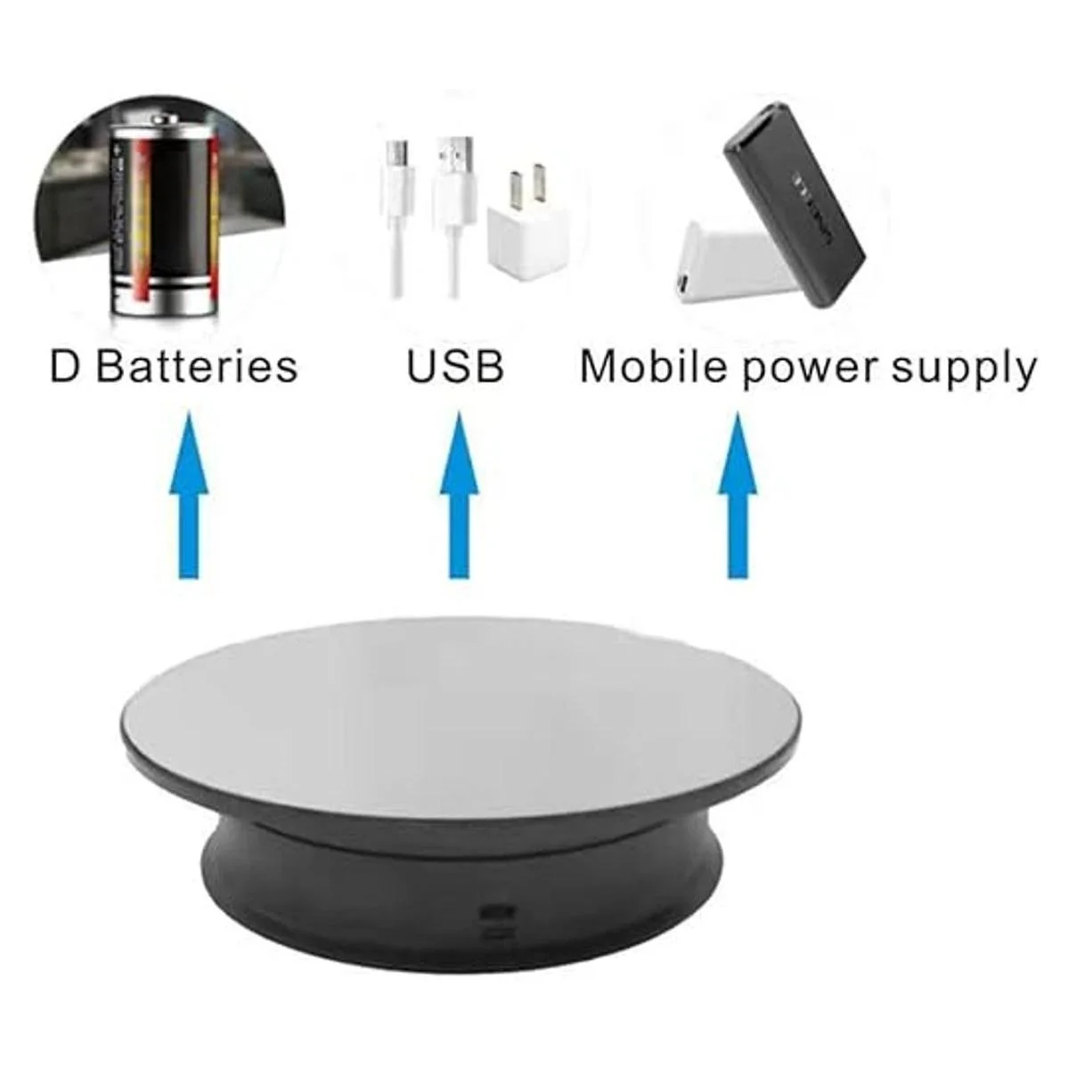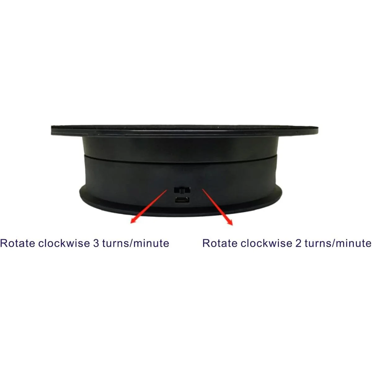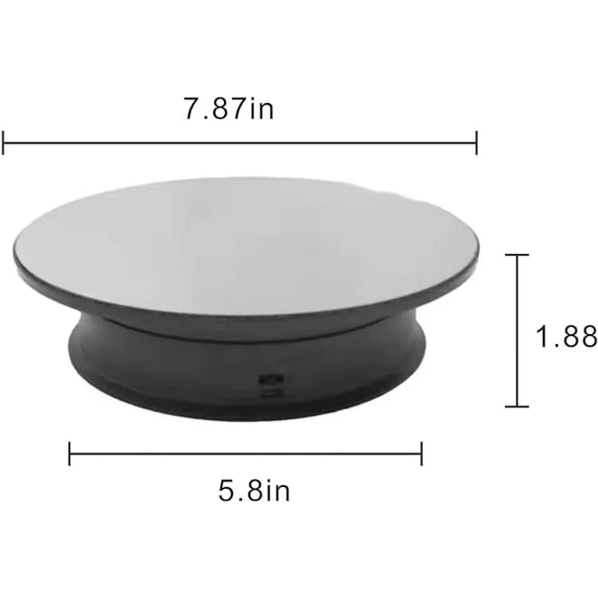 Soporte de exhibición giratorio motorizado, 8 pulgadas de carga, 6.6 libras, base giratoria de velocidad ajustable de 360 grados para fotografía, joyas, modelos 3D, batería y fuente de alimentación USB negro, cubierta de espejo
