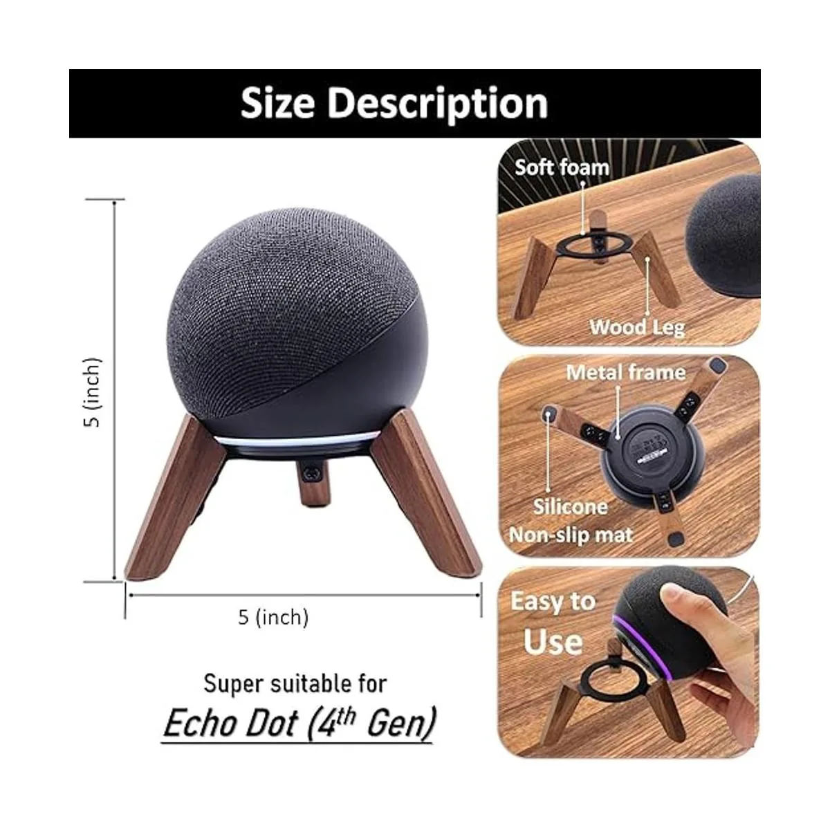 Compatibilidad Solo se aplica para el mini altavoz Dot 4 generación y Homepod, la pata de madera, el marco de metal y la espuma suave sujetan bien el altavoz, hacen que el punto E ch0 4 generación se mantenga firmemente en el soporte, no te preocupes por que se resbale y se caiga al usar.
