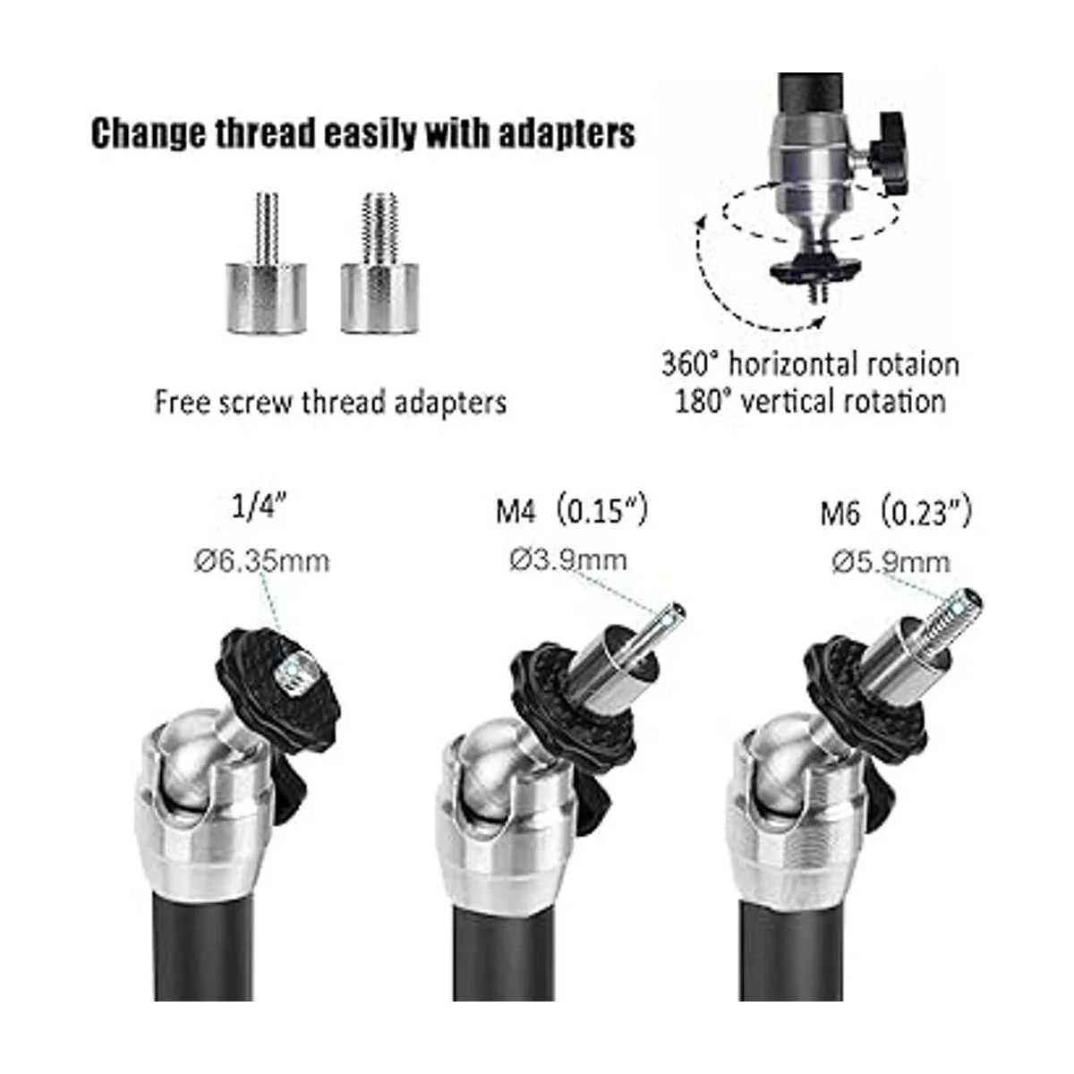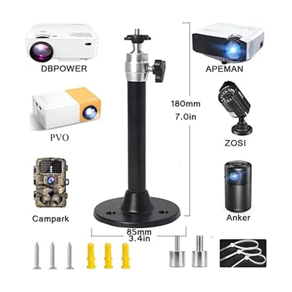 3. El soporte de proyector ajustable puede girar 360 grados e inclinarse 180 grados con una perilla para fijar el ángulo fácilmente. Oh, olvidé decir que la altura es de 7.087 in. Como cámara, mini proyector, CCTV, soporte de lámpara LED, necesita un ajuste flexible.