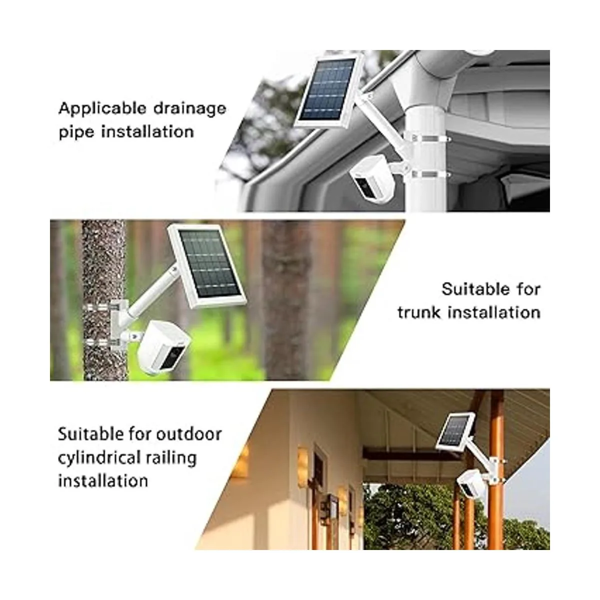 Aplicación: se adapta tanto a pilares redondos, instalación de pared como de techo, este soporte de techo de pared es adecuado para el montaje de anillo de panel solar súper panel solar y cámara de foco, muy duradero y cómodo.