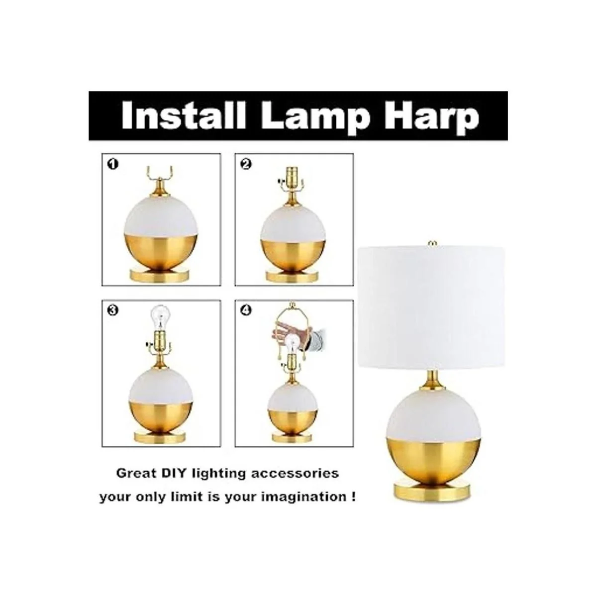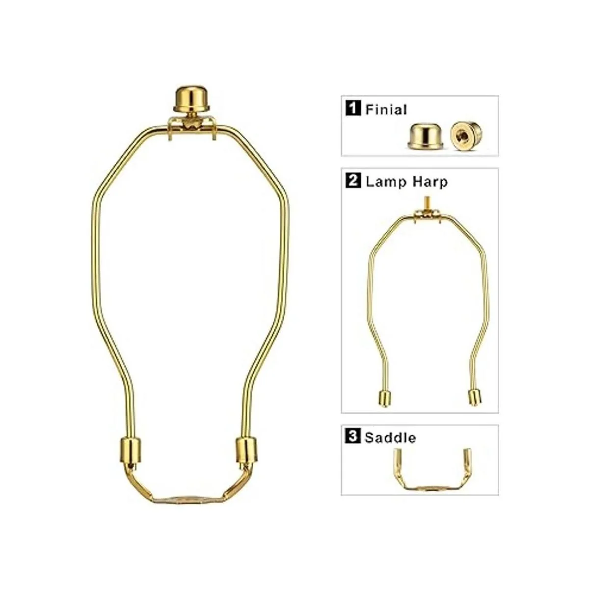 Fácil de instalar: este juego de arpa de lámpara desmontable puede asegurar la pantalla de la lámpara a las lámparas de mesa estándar o de pie fácilmente, el remate se atornilla y se quita fácilmente, el sillín se puede quitar si deseas mantener tu sillín existente.