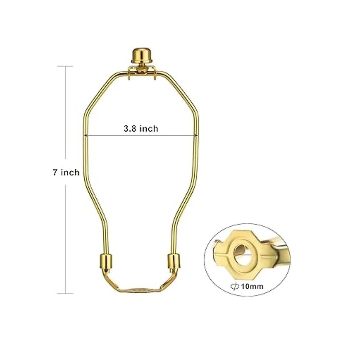 Aplicación: bueno para accesorios de iluminación modernos y estilo contemporáneo de decoración del hogar. Aviso: antes de comprar, asegúrate de que el tamaño es adecuado para tu lámpara. El arpa es de 7.0 in, el diámetro del agujero del sillín es de 0.4 in, el remate de la lámpara es de 1.5 in de alto.