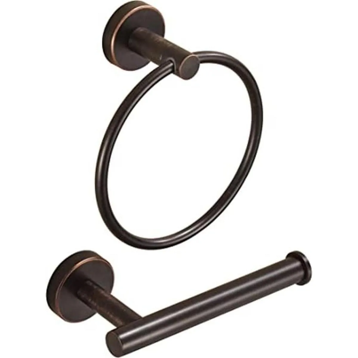 Soporte de papel higiénico de bronce, soporte para toallas de papel higiénico aceitado, juego de accesorios de baño, para montar en la pared, rústico, casa de campo, acero inoxidable, 2 piezas