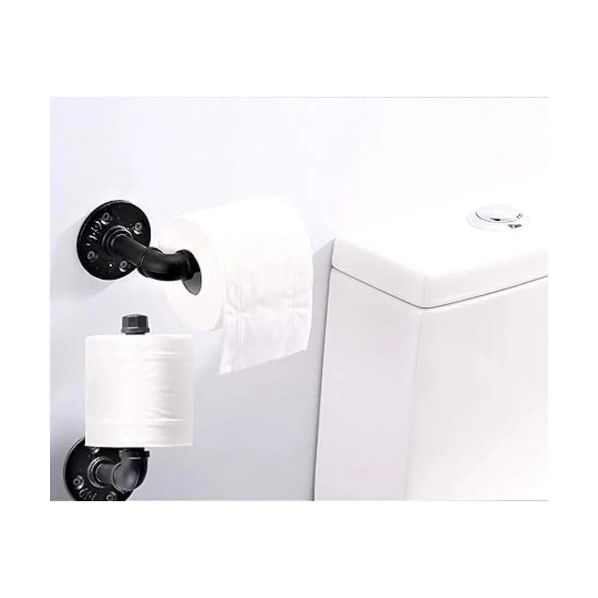 Material duradero: soporte de papel higiénico de aspecto industrial hecho de hierro de calidad, muy fuerte, acabado negro galvanizado, superficie lisa, limpio y transparente para proteger contra el óxido.