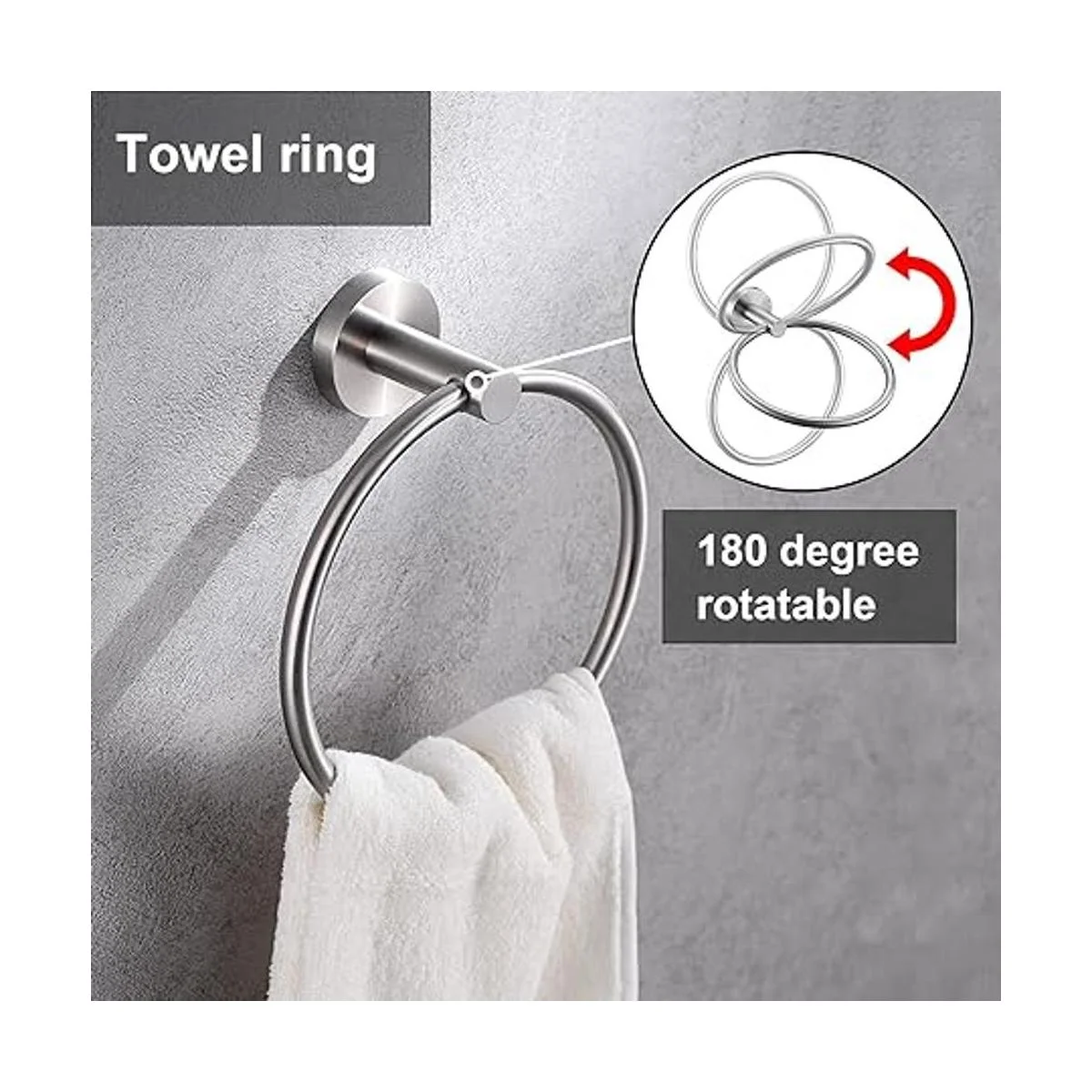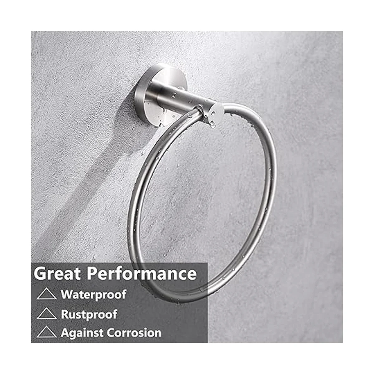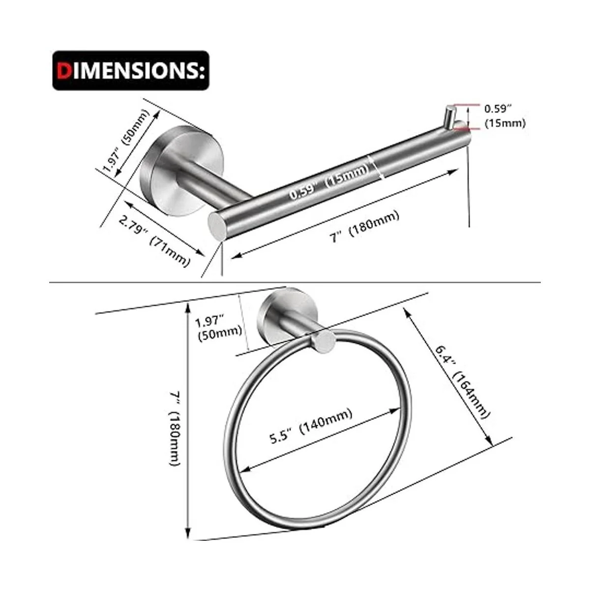 A prueba de rotación: este anillo redondo plateado para toalla y soporte para rollo de papel higiénico está montado en la pared antirrotación y tornillos ocultos diseñados, permanece en dirección horizontal todo el tiempo.