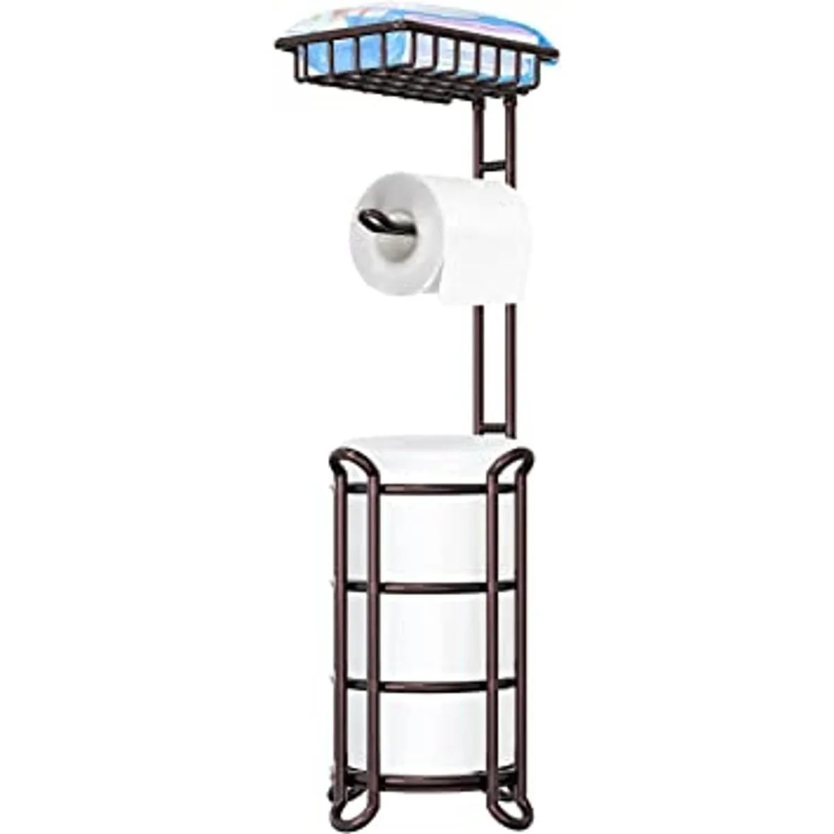 Diseño independiente: este soporte de papel higiénico independiente ahorra espacio y es móvil, el soporte de papel higiénico se puede mover a un lugar accesible junto a ti y se puede utilizar en condominios, apartamentos, campistas, cabañas, etc. Fácil montaje sin herramientas, sin complicados accesorios de montaje en pared, sin taladrar