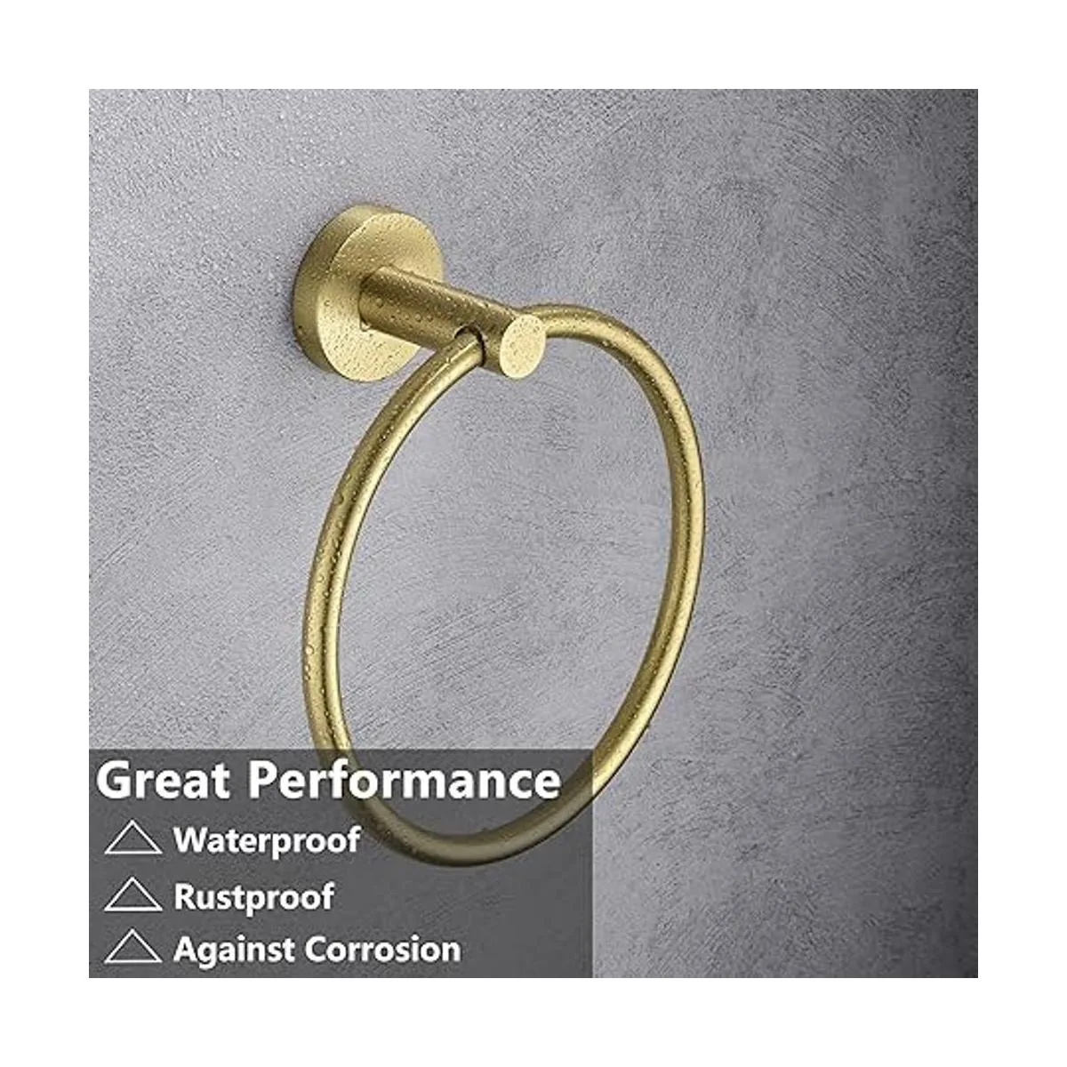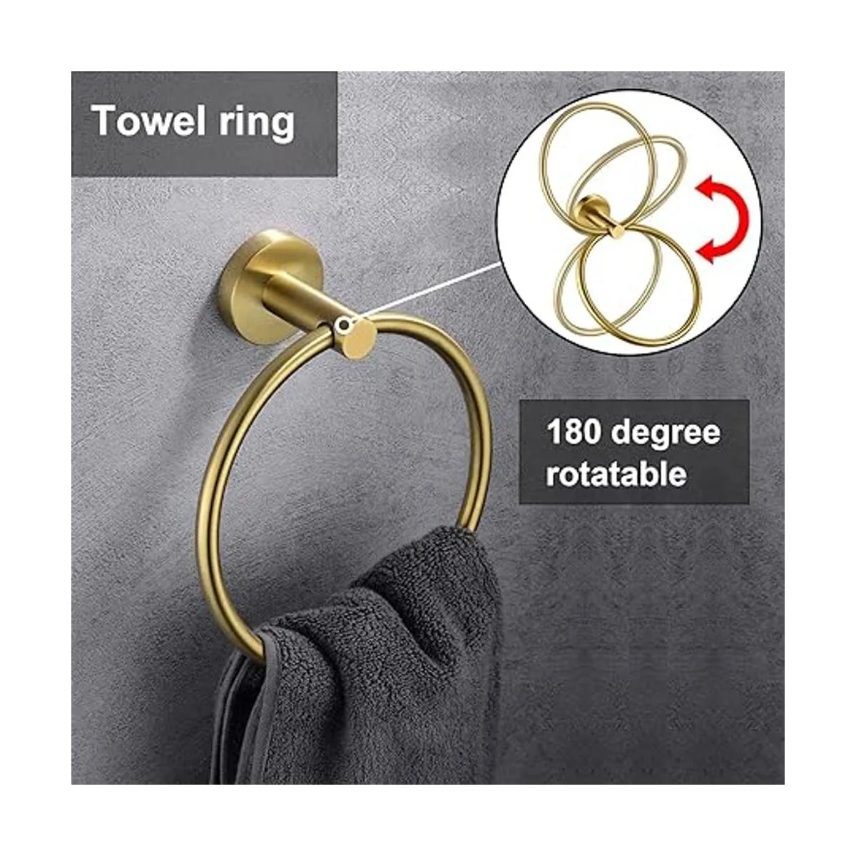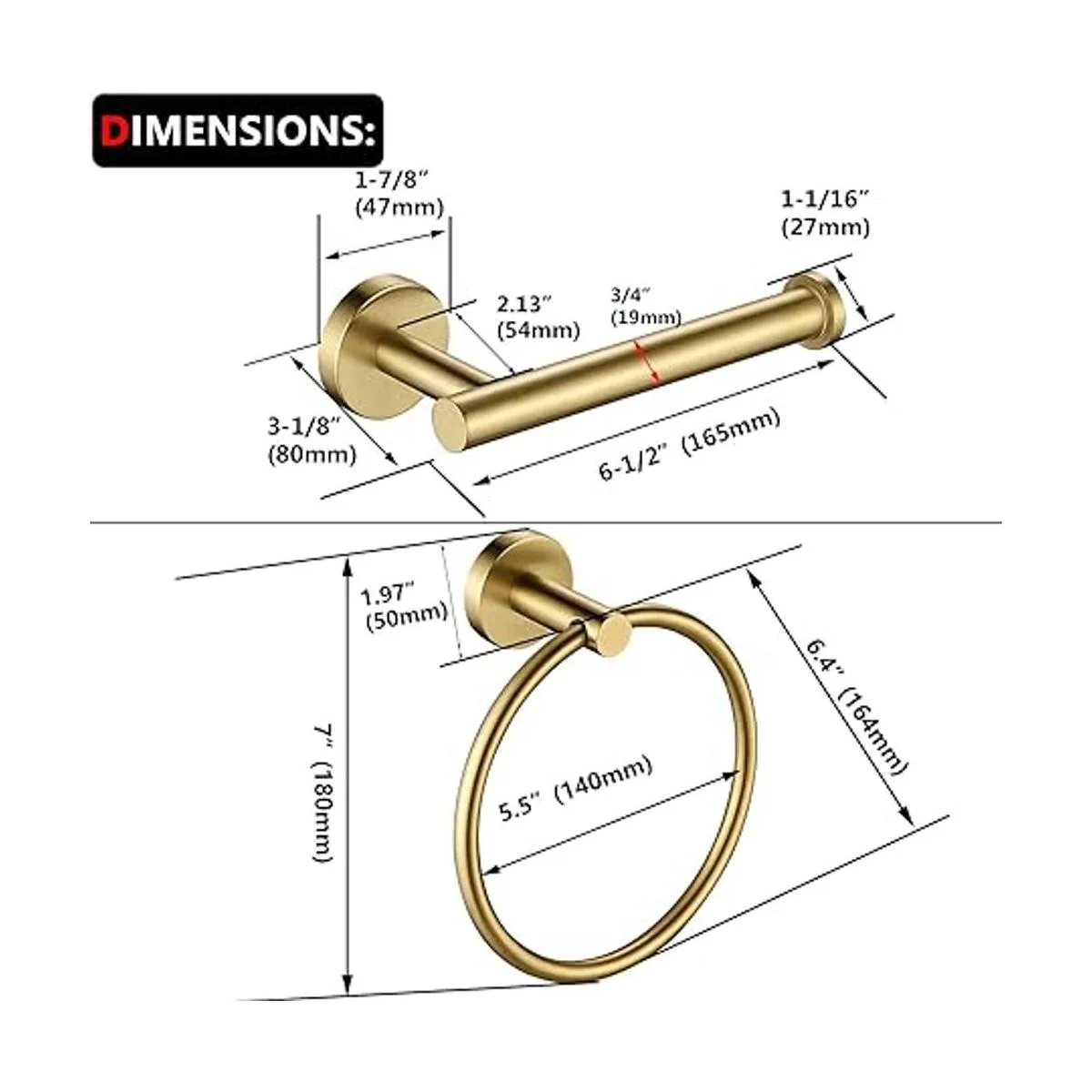 Acabado cepillado a mano: acabado de acero inoxidable cepillado a mano, elegante y exquisito proceso dorado que hace que el anillo de toalla de mano y el soporte de papel higiénico dorado se vean a la moda y se sientan cómodos. Se puede construir para resistir arañazos diarios, corrosión y deslustre. Solo limpiar con un paño suave y húmedo suavemente.