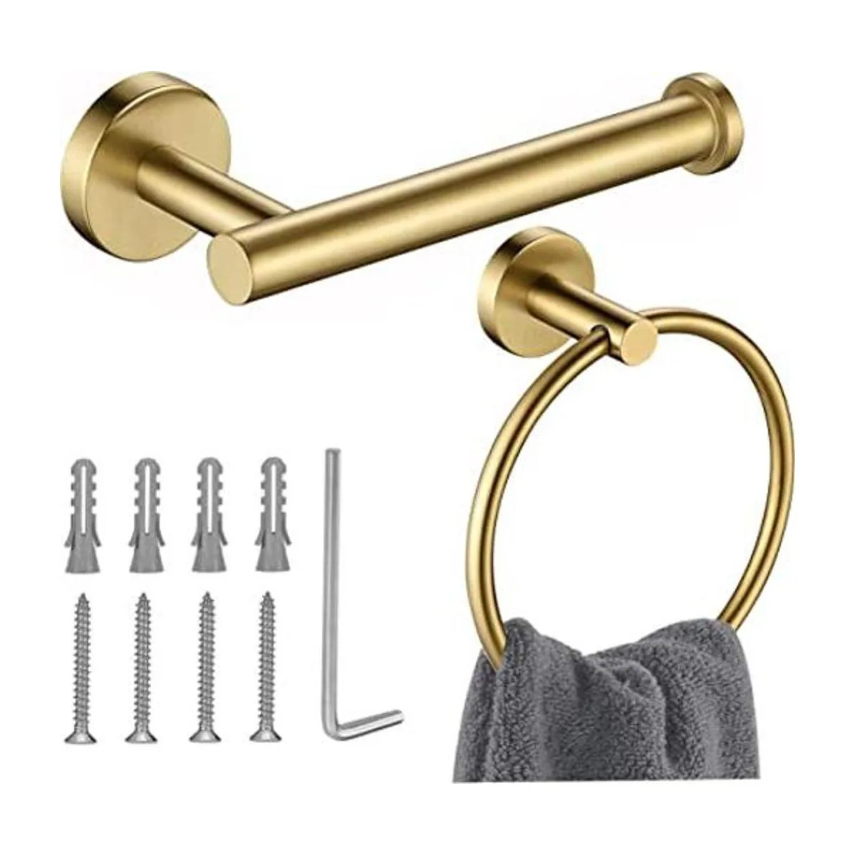 Soporte de papel higiénico dorado, juego de 2 toallas de mano para accesorios de baño, juego de accesorios de acero inoxidable SUS304, soporte de baño resistente para montaje en pared