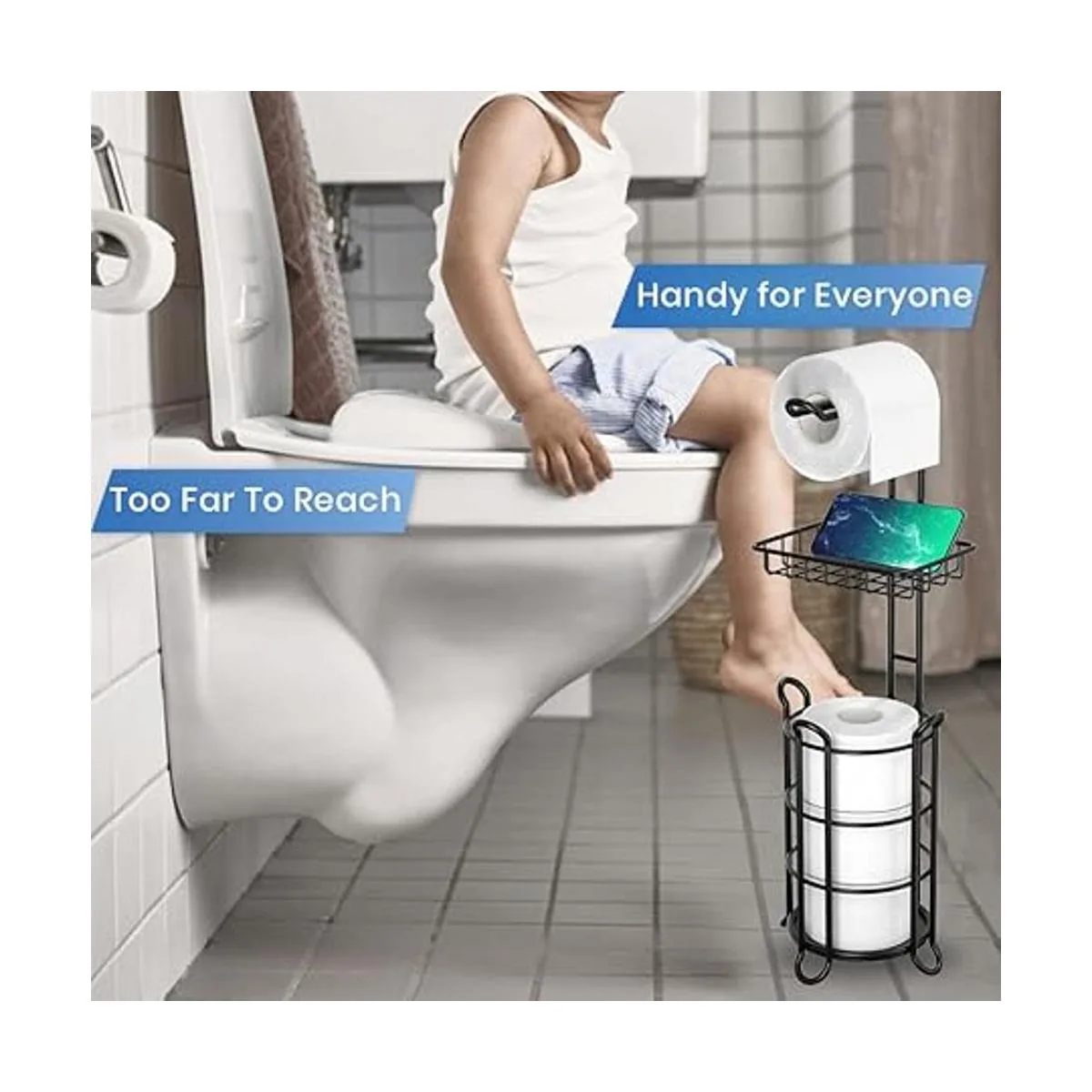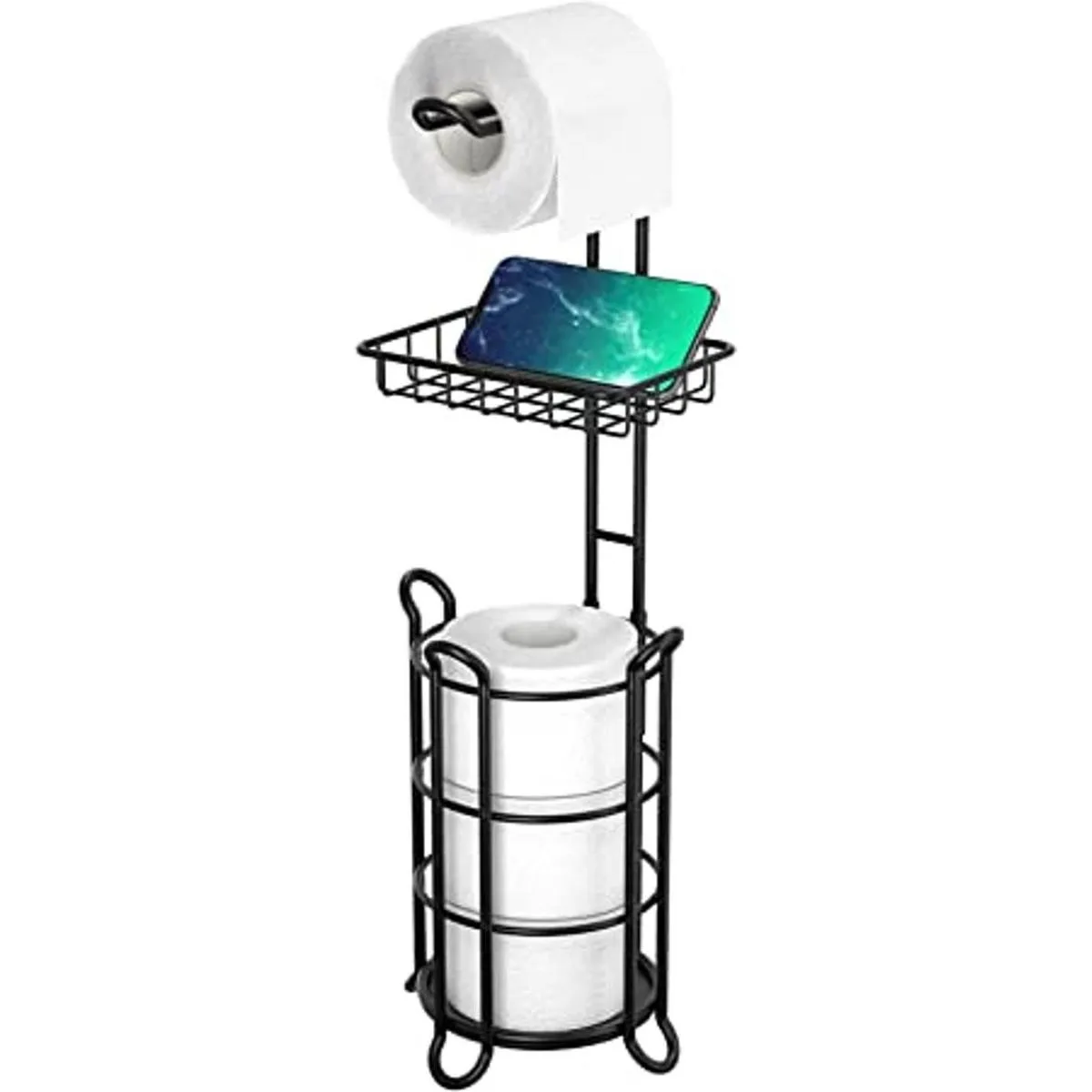 Gran capacidad: diámetro de 6.5 pulgadas, perfecto para rollos normales/dobles/megas/jumbos/familiares, la cesta inferior puede contener 3 rollos, el estante adicional puede sostener tu teléfono y limpiar en un lugar seguro
