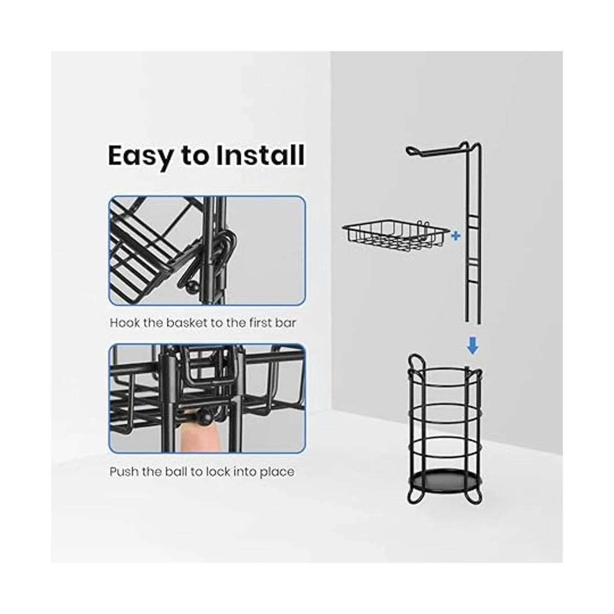 Fácil acceso: nunca te quedes sin papel higiénico de nuevo Con este soporte de papel higiénico negro. Tu papel higiénico siempre se mantiene junto a tu inodoro, cabe fácilmente en la esquina, sentado justo junto a tu inodoro para la comodidad de todos