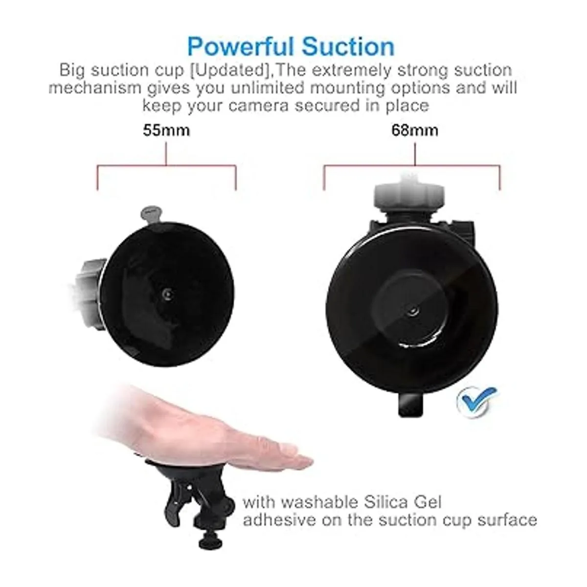 Funciona en interiores y exteriores: el soporte está hecho de materiales resistentes a la intemperie, más duradero y resistente a la oxidación en exteriores. Su ventosa mantendrá tu producto pegado a las superficies bajo diferentes condiciones climáticas. Perfecto para uso en interiores y exteriores. Compatible con cualquier cámara que tenga un agujero de tornillo de 1/4 pulgadas.