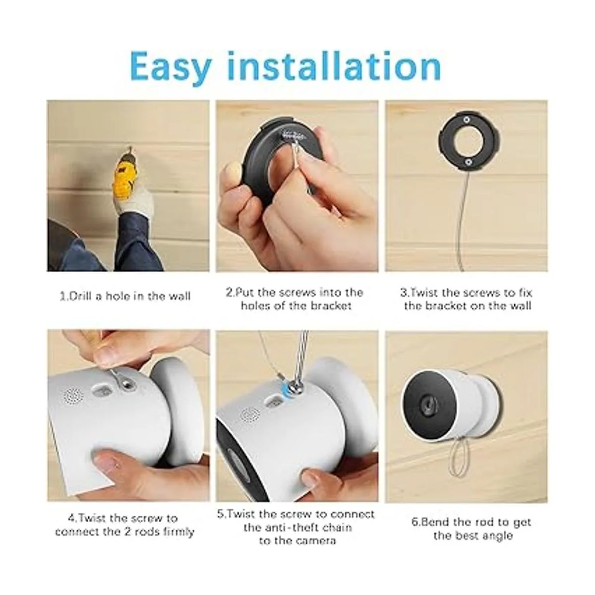Incredibly Durable the steel wire is very durable and difficult to tear off, this can help you better to secure the Google Nest Cam Battery camera.