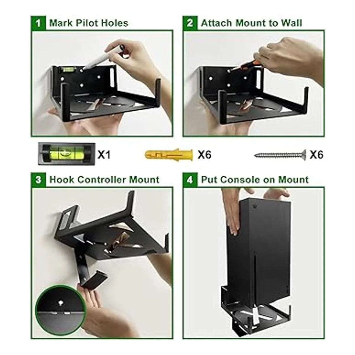 Soporte de pared para Xbox Series X montaje de la consola y accesorios en la pared cerca o detrás de la TV con botón de encendido delanteroizquierdoderecha, kit de soporte de estante de pared para sistema XSX