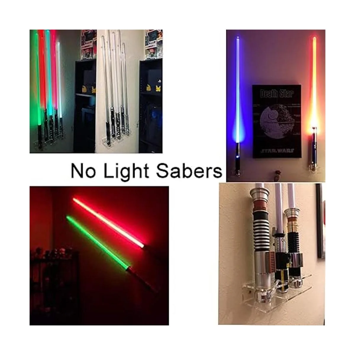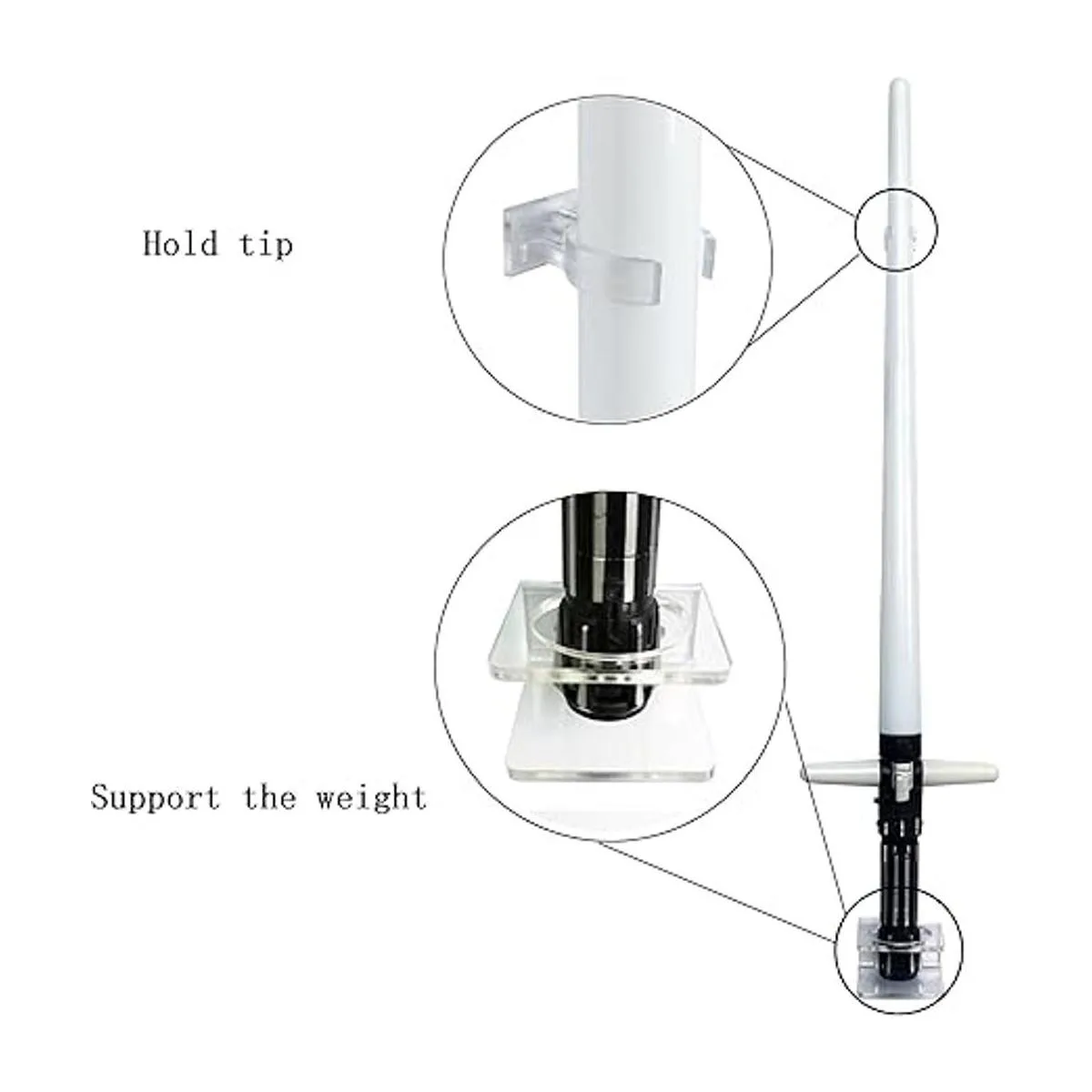 Producto patentado para mantener el sable de luz mostrado verticalmente. Cantidad: un soporte de hoja transparente, un clip de montaje en pared. Accesorios incluidos.