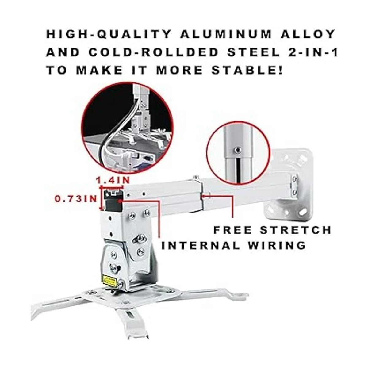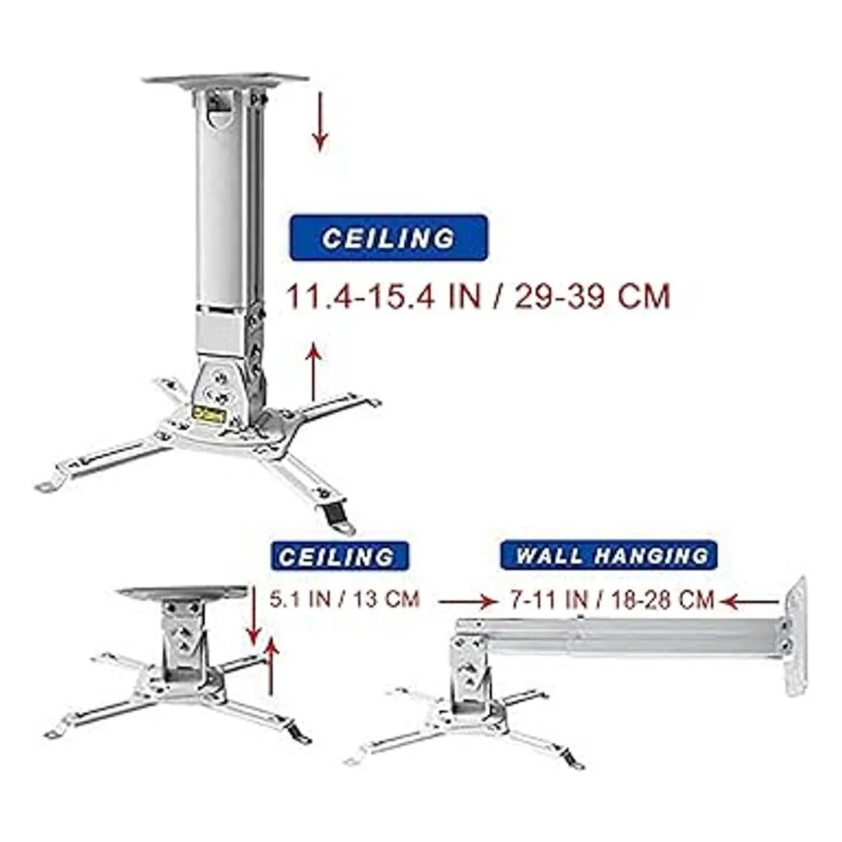 Soporte de proyector resistente, resistente soporte universal para proyector, montaje en techo de pared, carga máxima de 45 libras, extensible de 11.4 a 15.3 pulgadas, ángulo ajustable blanco, soporte de montaje en pared para proyector