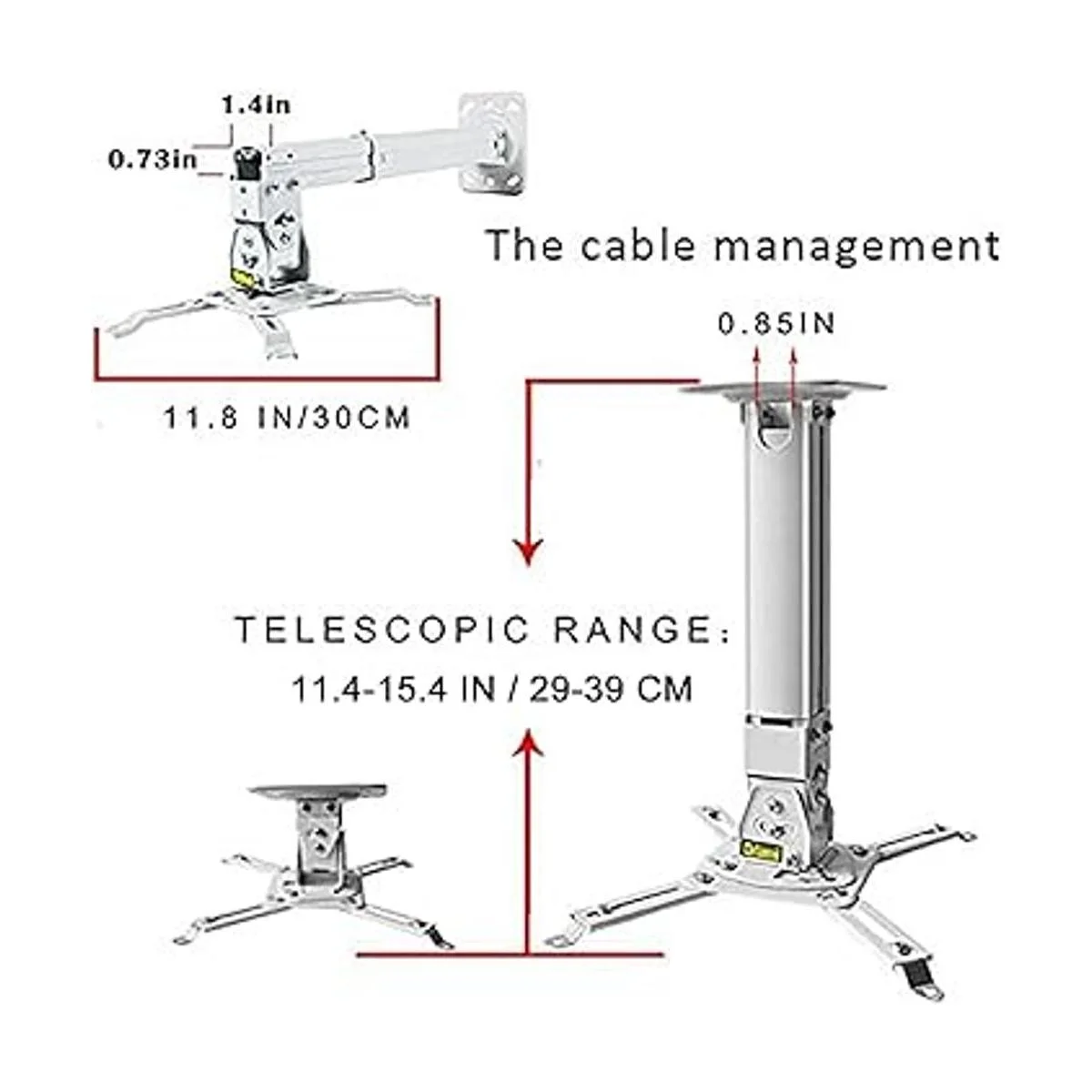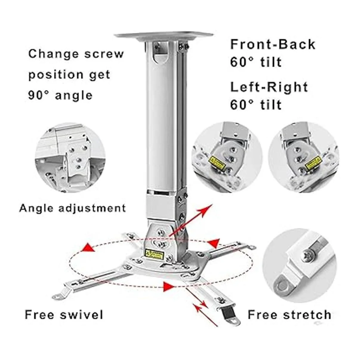 2. Soporte de proyector de movimiento completo con diseño flexible para inclinación de 60 grados, giro de 30 grados, para obtener todos los ángulos de proyección correctos. Bloquea y permanece bien después de ajustarlo.
