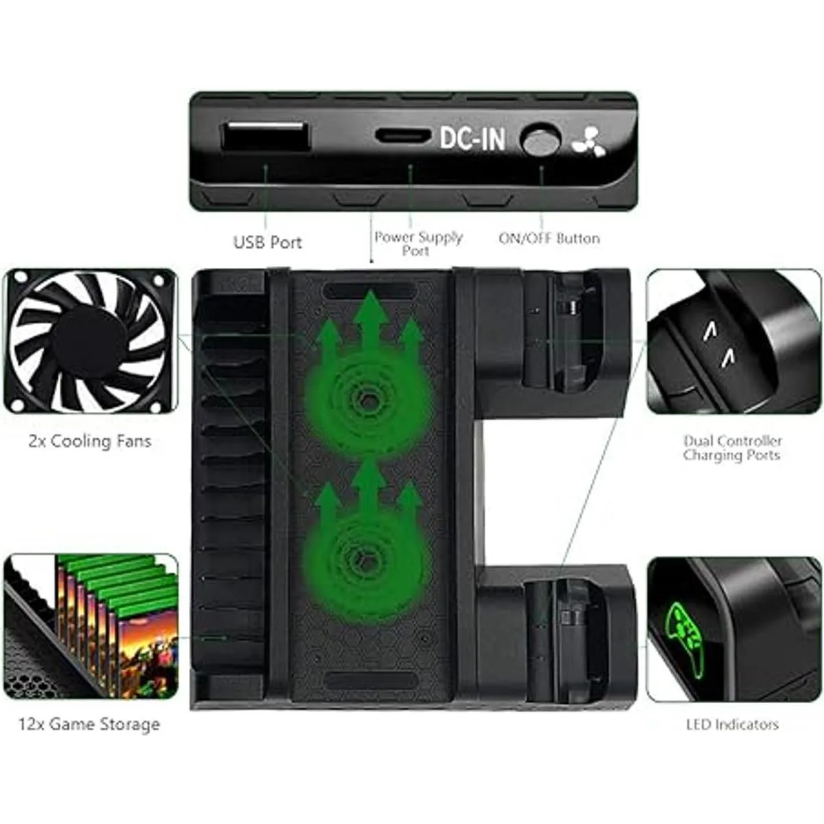 Soporte de refrigeración para Xbox OneOne SOne X, CTPOWER Estación de carga vertical con 2 pilas de 600 mAh, almacenamiento de juegos, estación de carga de doble controlador