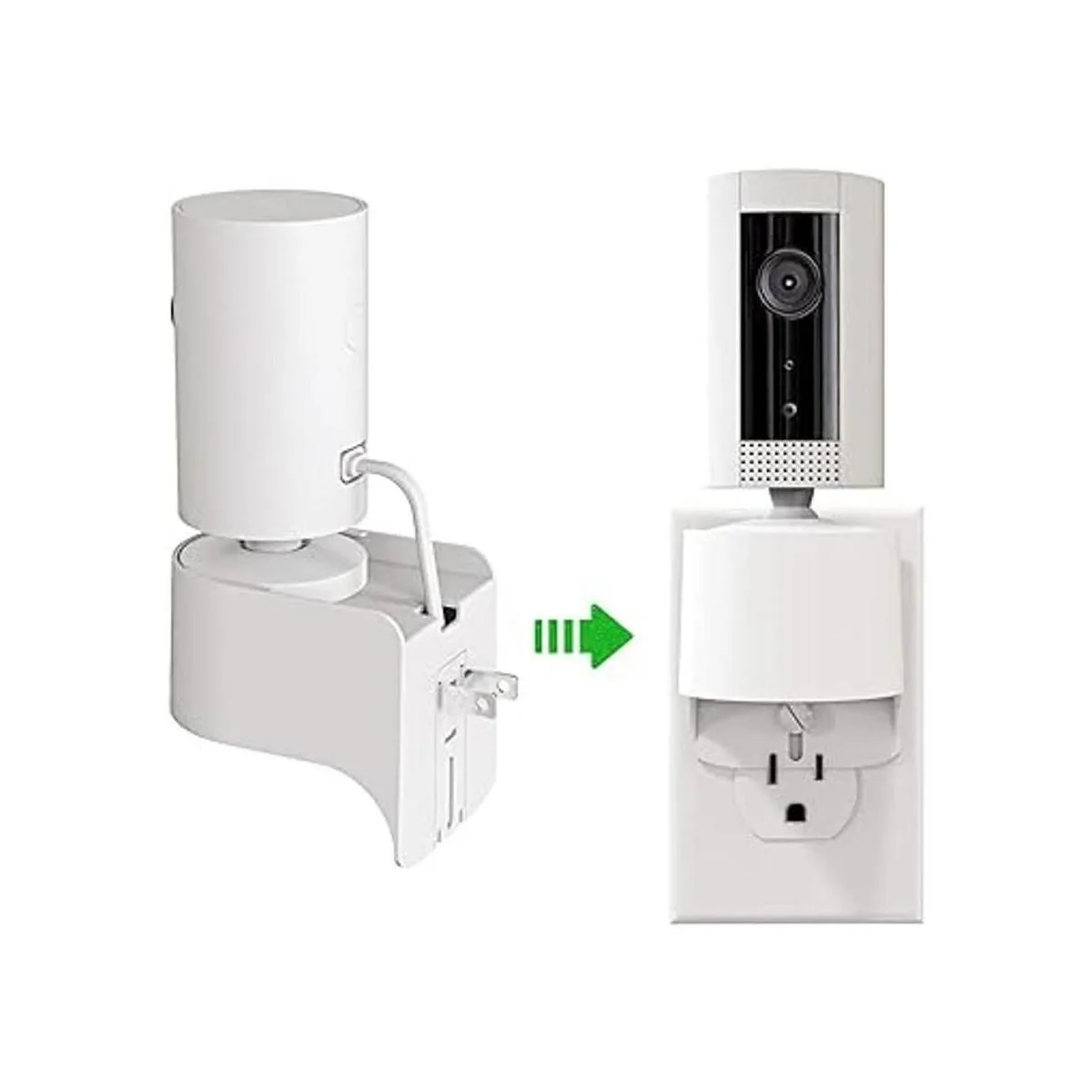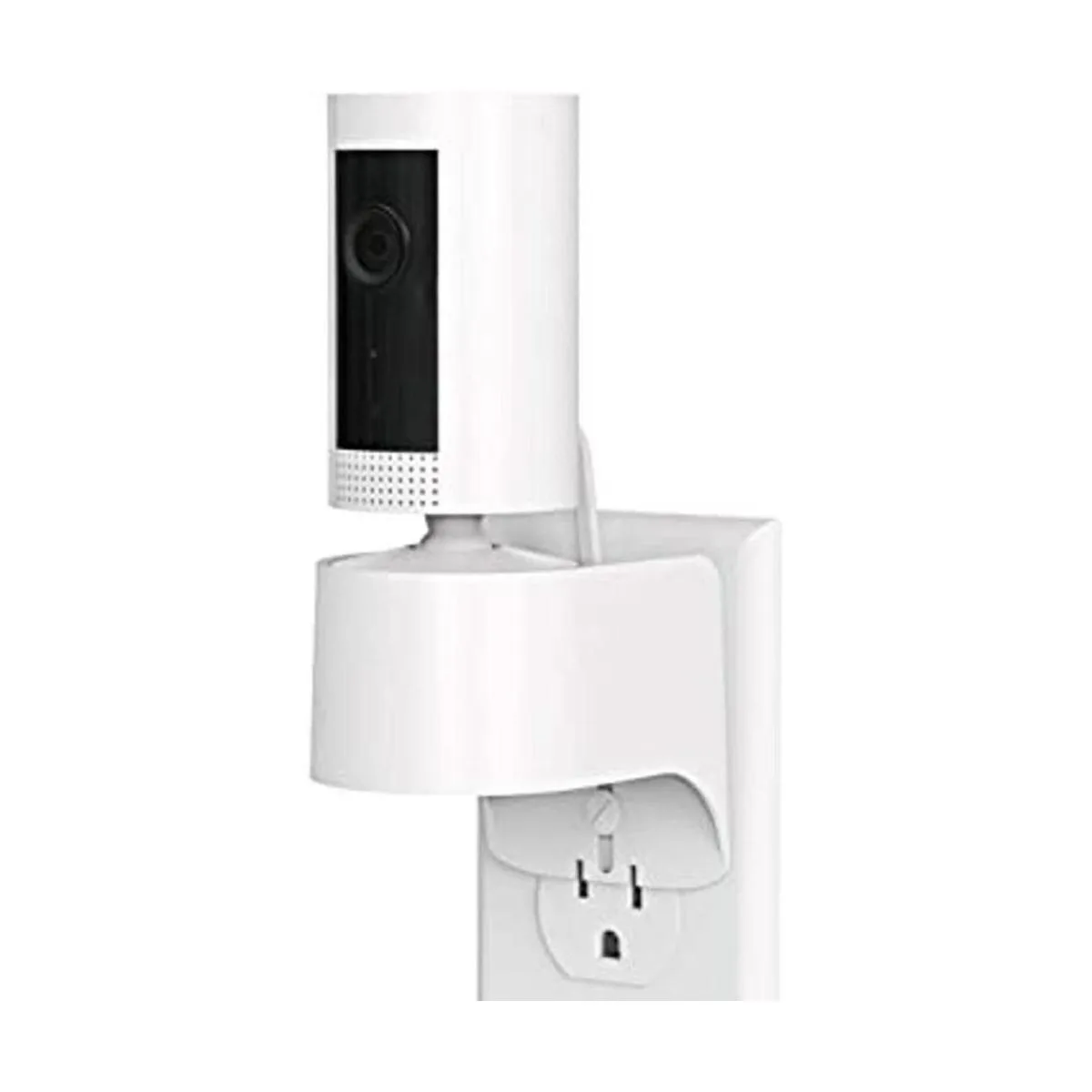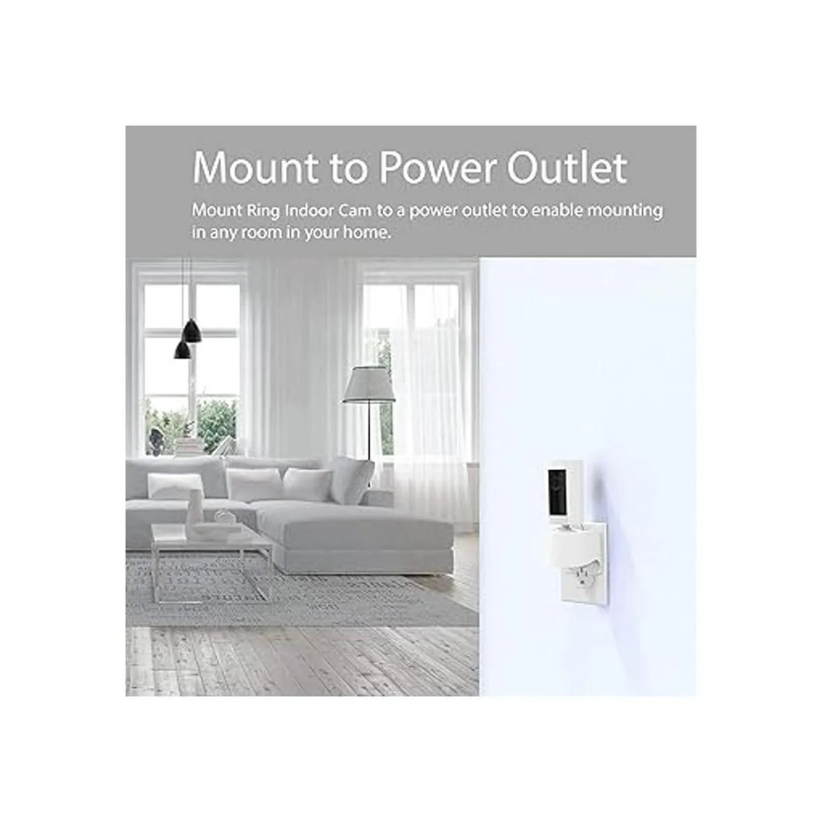 Soporte de salida para anillo de cámara interior, soporte de pared enchufable con adaptador de corriente y cable para cámara interior de anillo, giratorio de 360 grados y diseño de ahorro de espacio, sin cables desordenados o daños en la pared paquete de 1