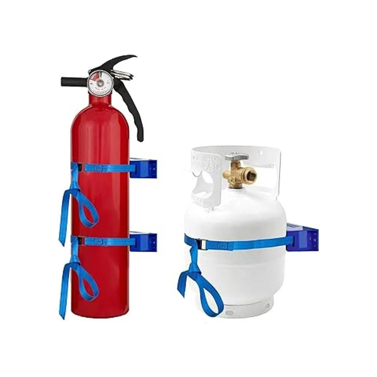 Soporte de tanque de propano para cilindro de gas, soporte de pared con correa de seguridad de 59 pulgadas y tornillos SUS 304 y soporte de tanque de propano ABS duradero azul