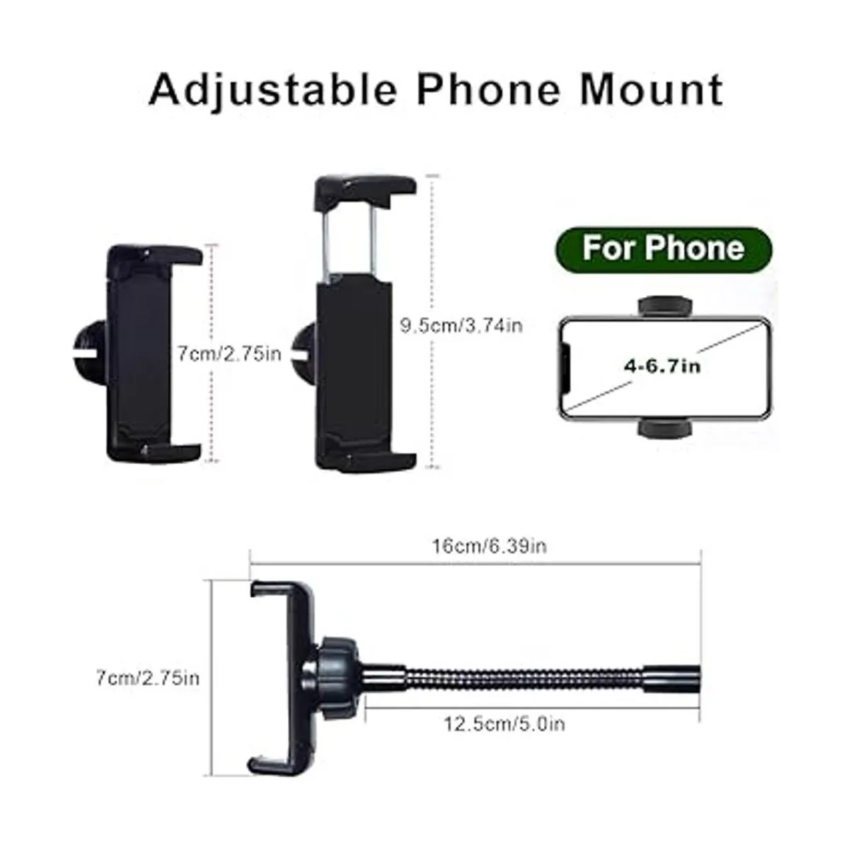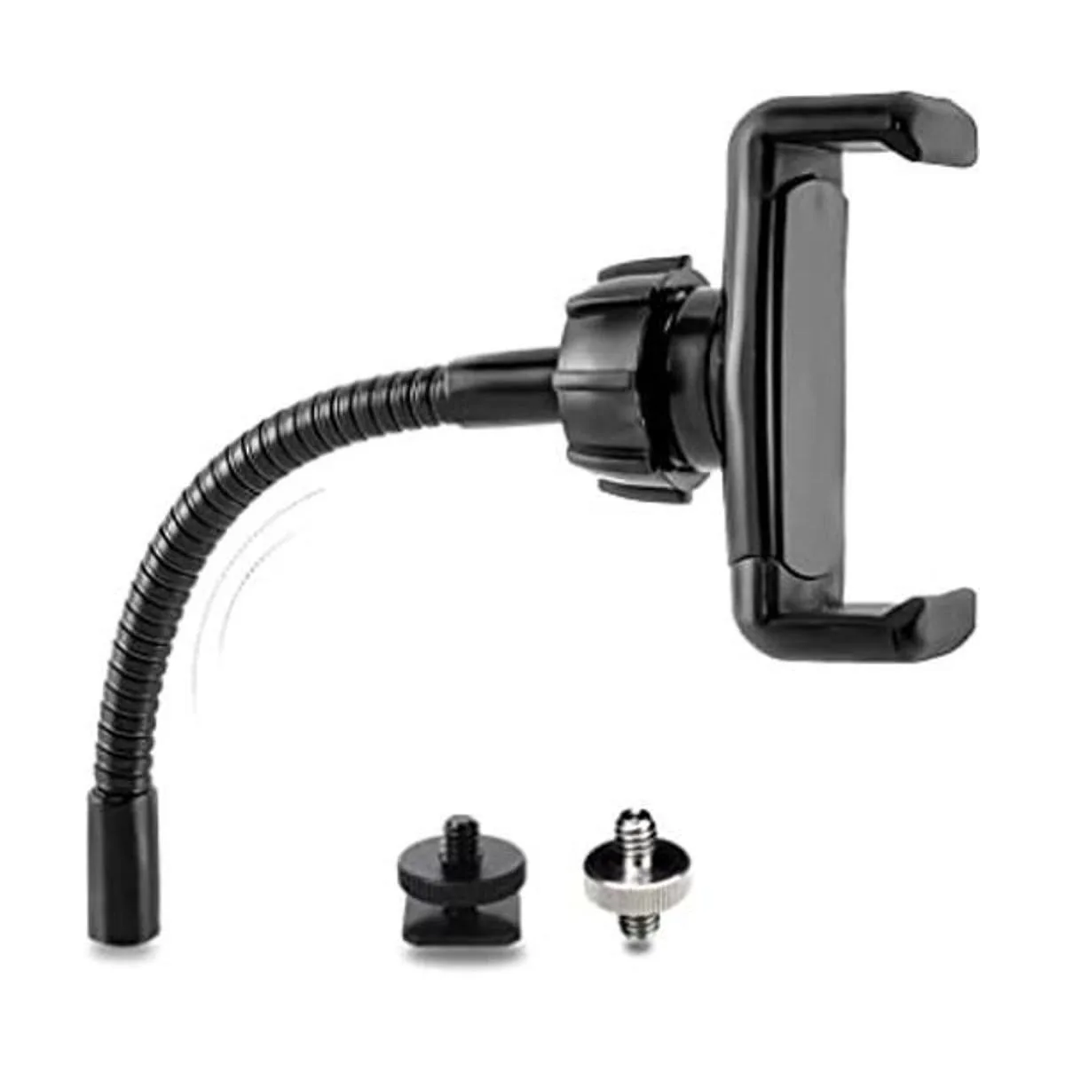 Diseño desmontable, el kit incluye brazo de cuello de cisne con rosca hembra de 1/4 pulgadas, soporte de zapata caliente, adaptador macho de 1/4 pulgadas a macho de 1/4 pulgadas y soporte universal para teléfono. Instala teléfonos inteligentes en tu DSLR, soportes de luz de anillo o cualquier soporte de trípode con rosca macho/hembra de 1/4 o base de zapata caliente.